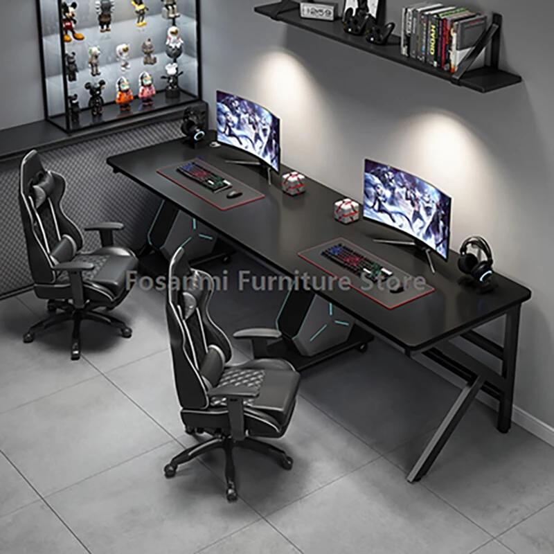 Large 2-Person Gamer PC Desk with K-Shaped Leg Modern Office Double Computer Desks Spacious Home Study Gaming Long Table for Two