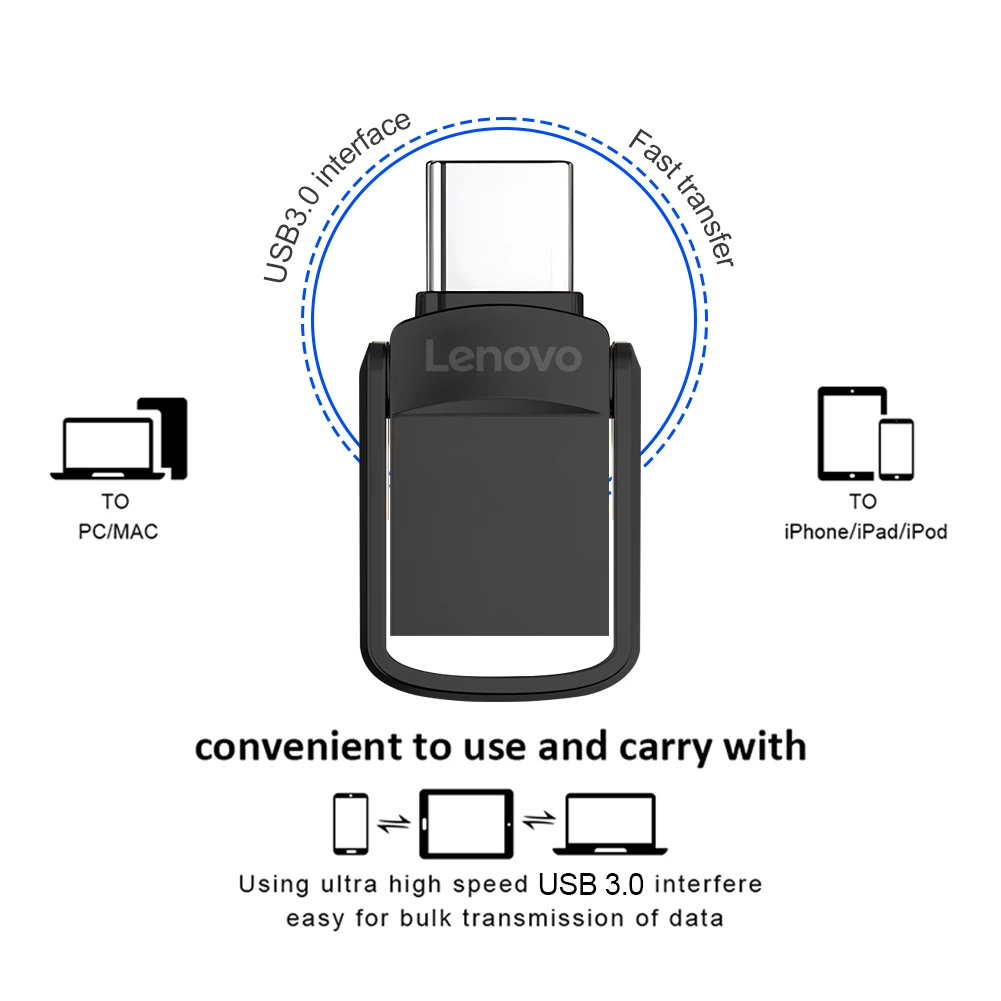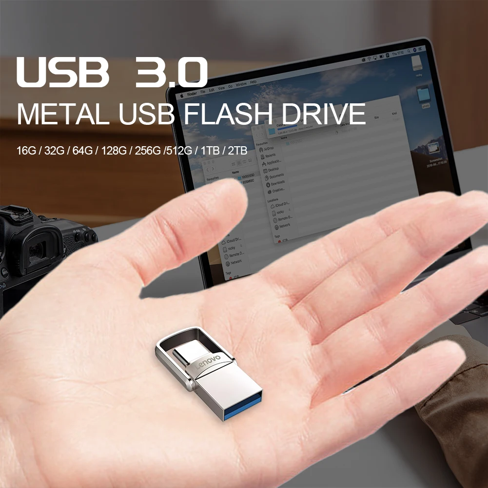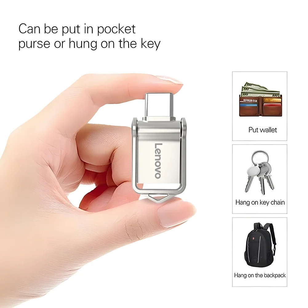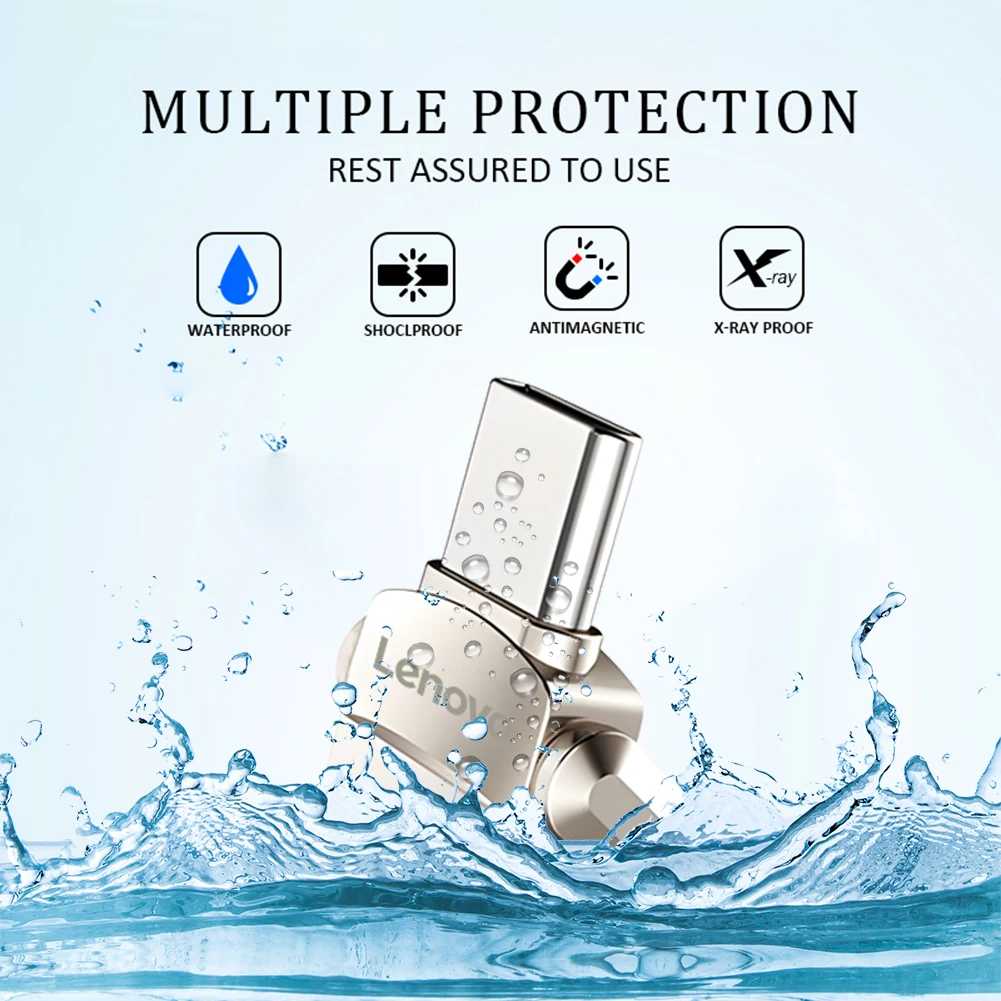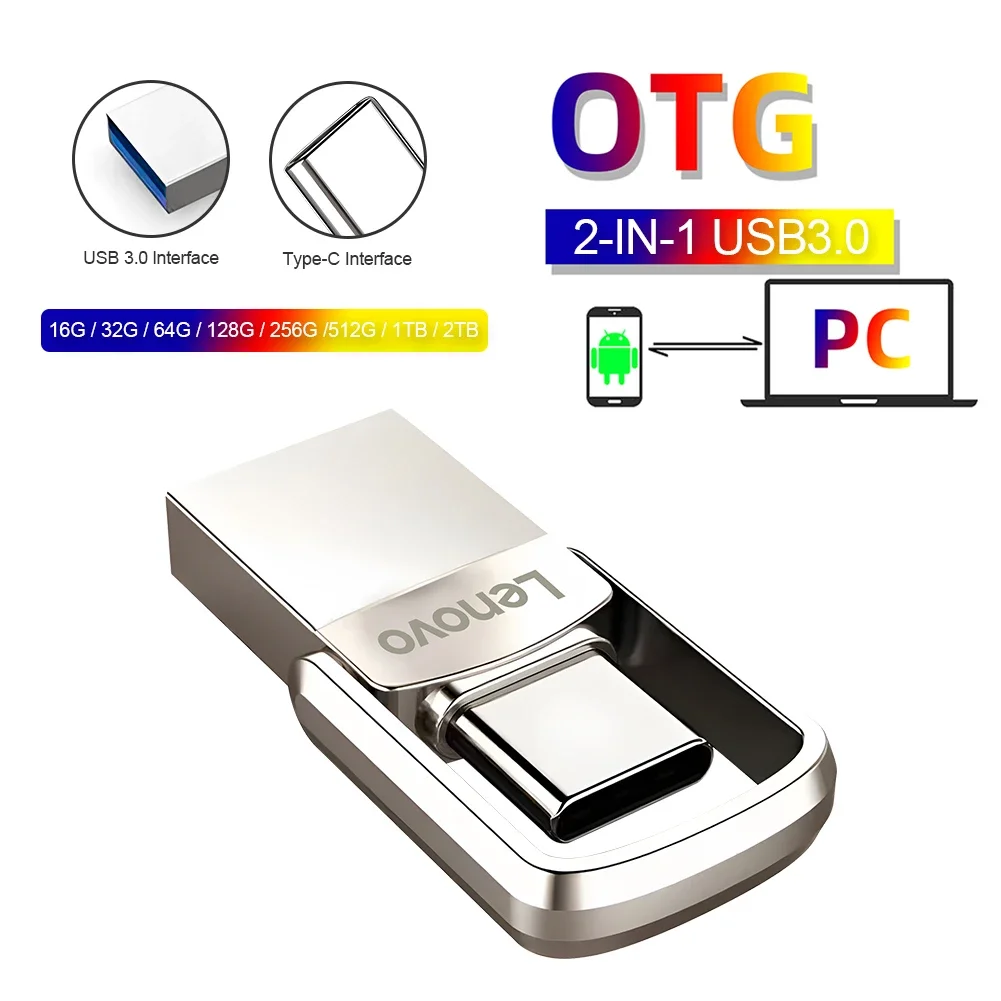 Lenovo 2TB U Drive USB 3.0 1TB 512GB Type-C High Speed Pen Drive Metal Waterproof USB Flash Drives Storage Memoria USB Stick