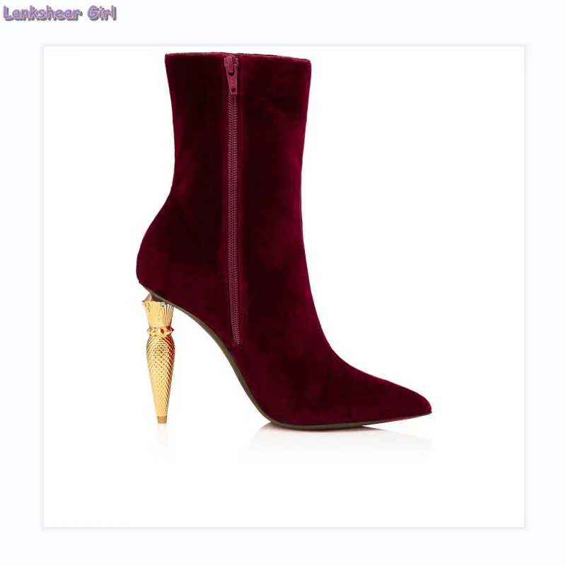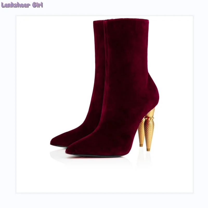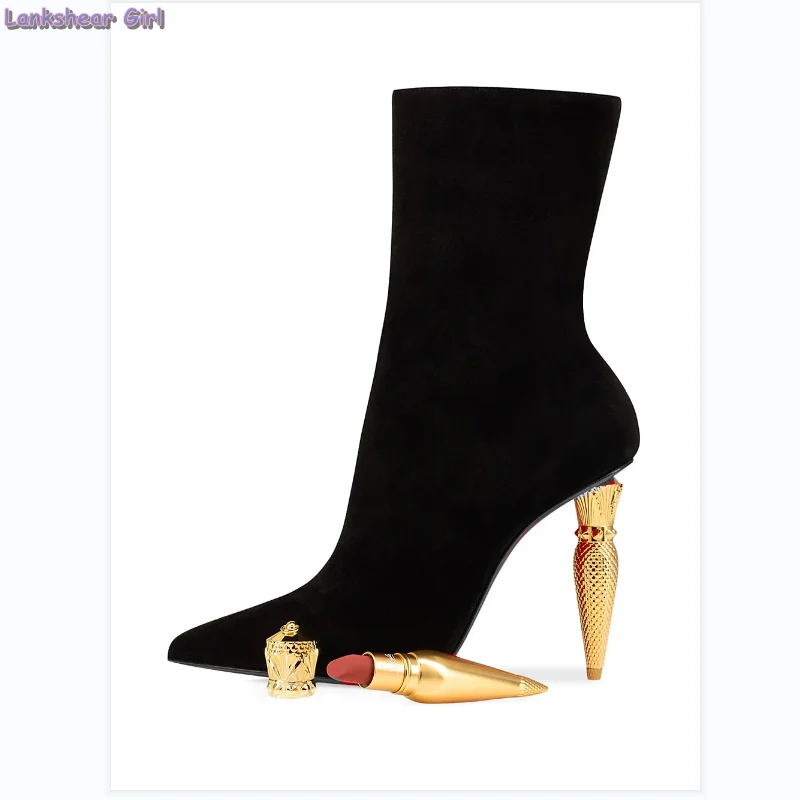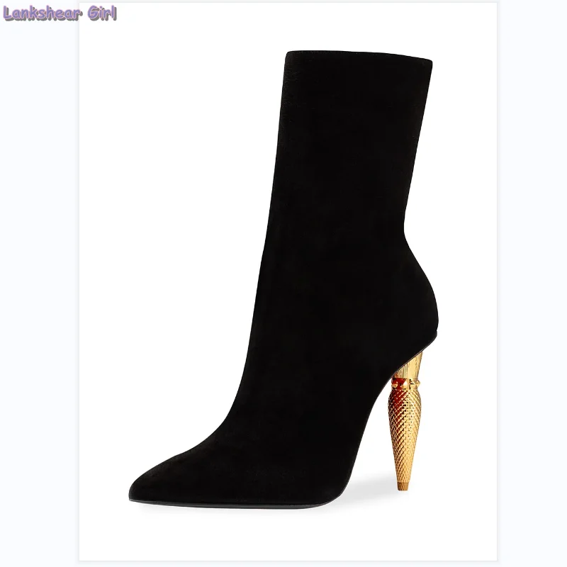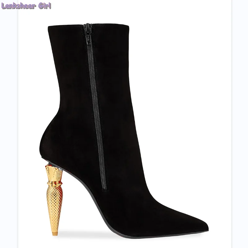 Lipbooty Suede High-Heel Booties Black Gold Galata Gold Velvet Pointed Toe Ankle Boots for Women Interior Zipper Elegant Fashion
