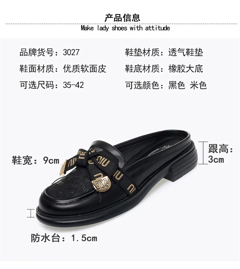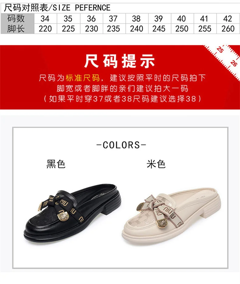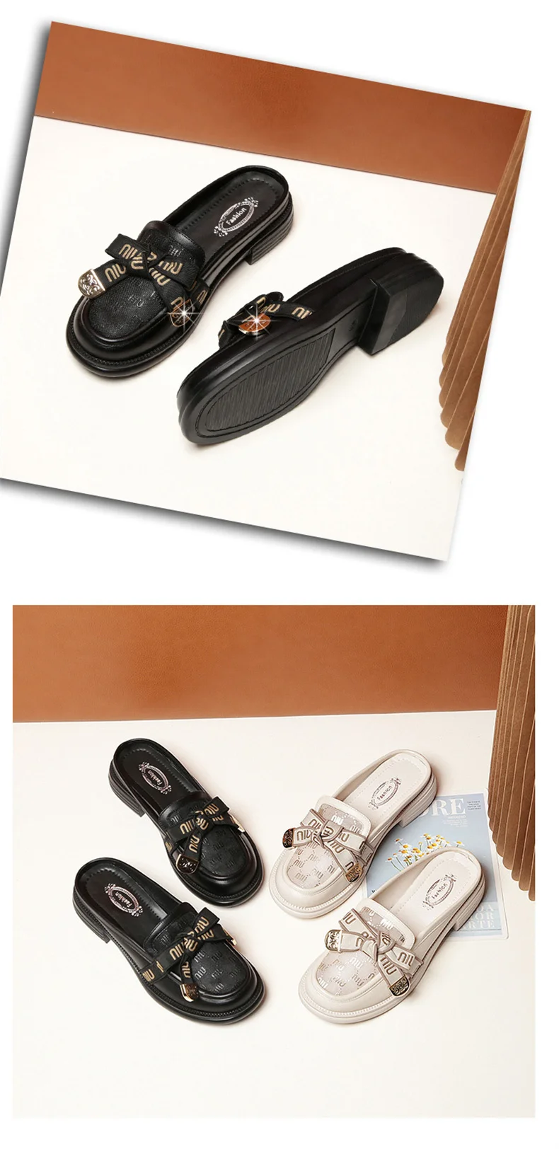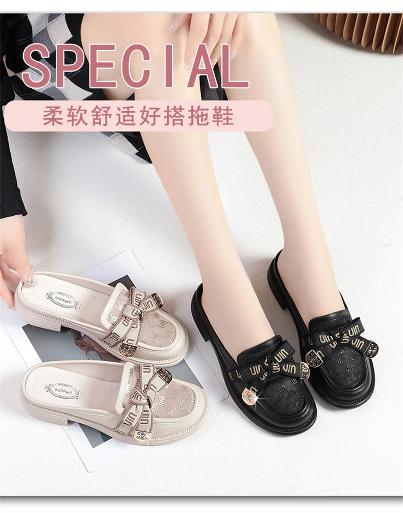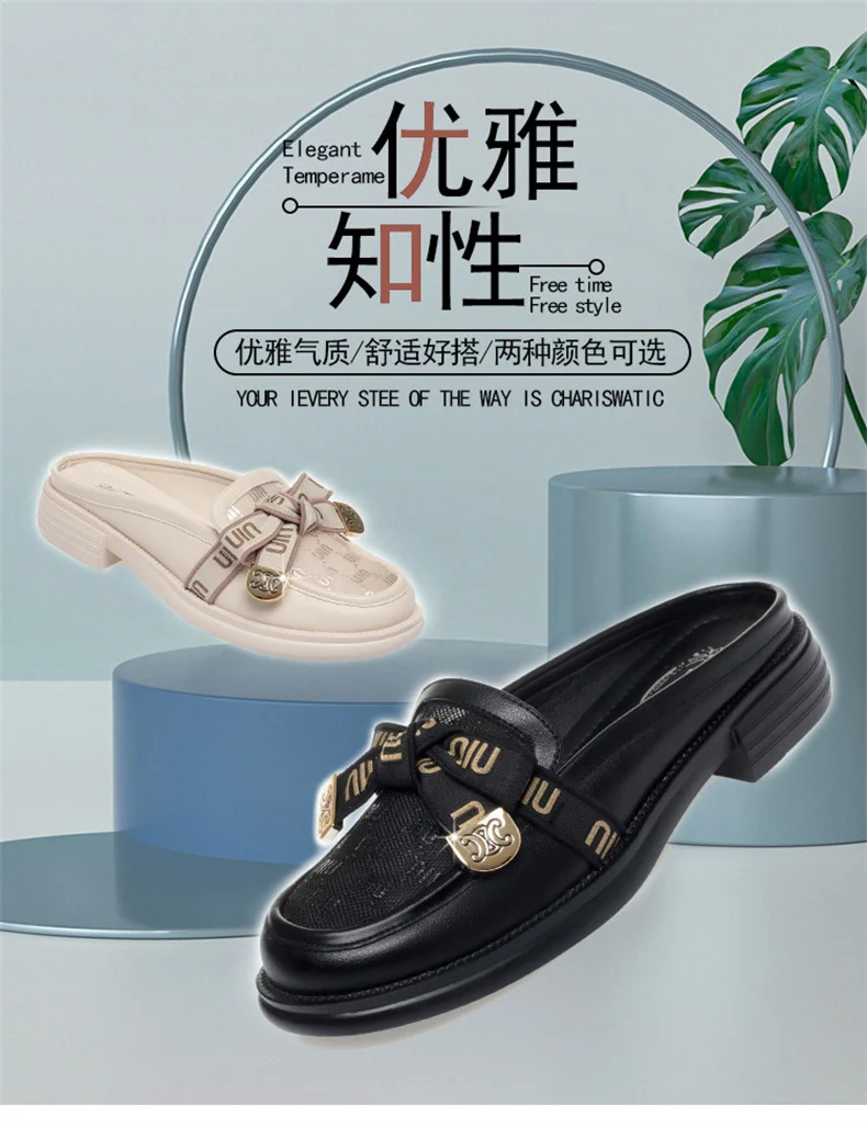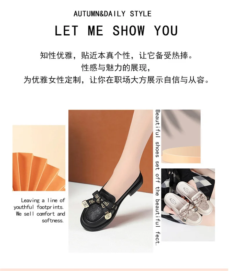 Loafers Baotou Half-Slippers Women’S Single Shoes 2023 New Summer Women’S Shoes Bowknot Hollow Mesh Outer Wear Sandals Fashion