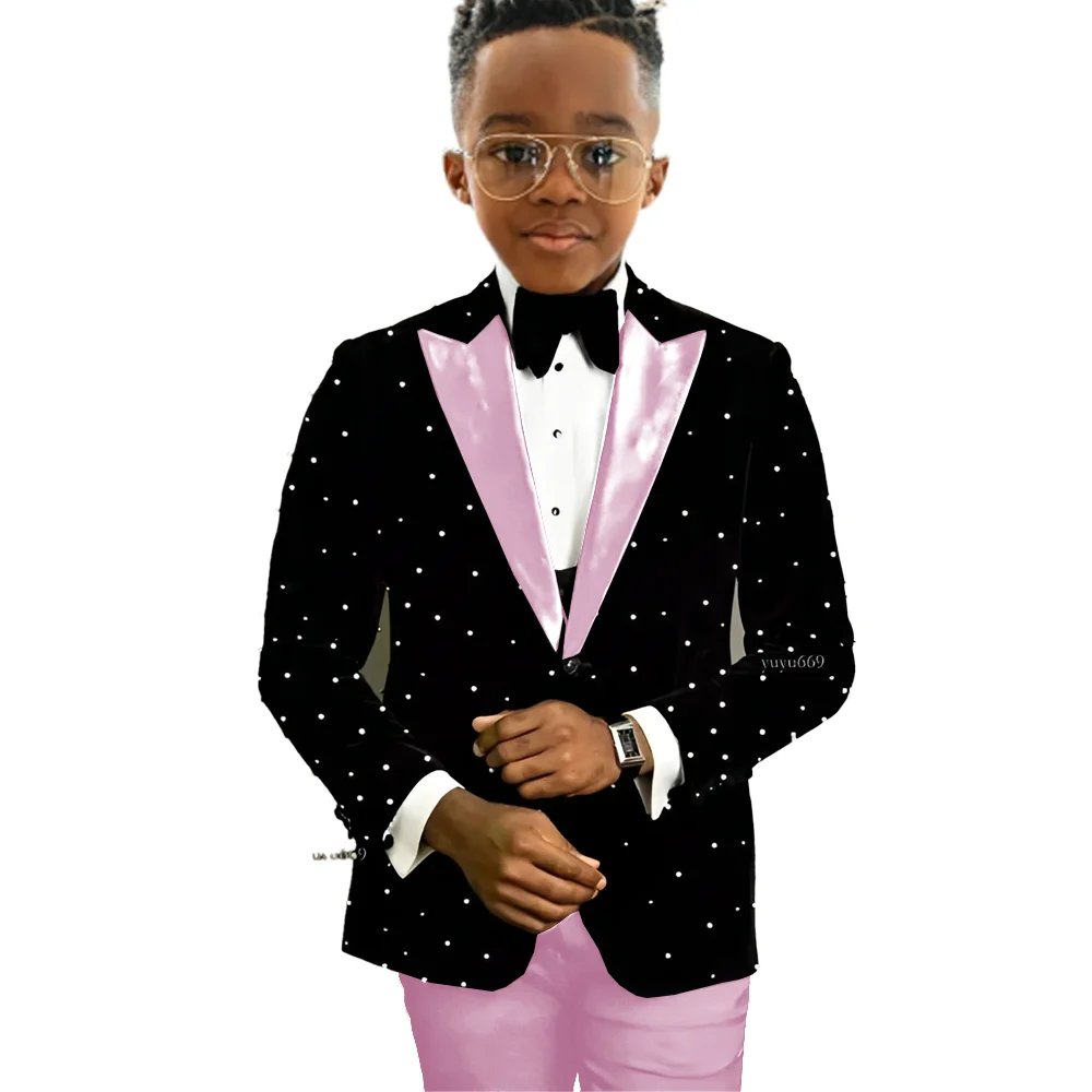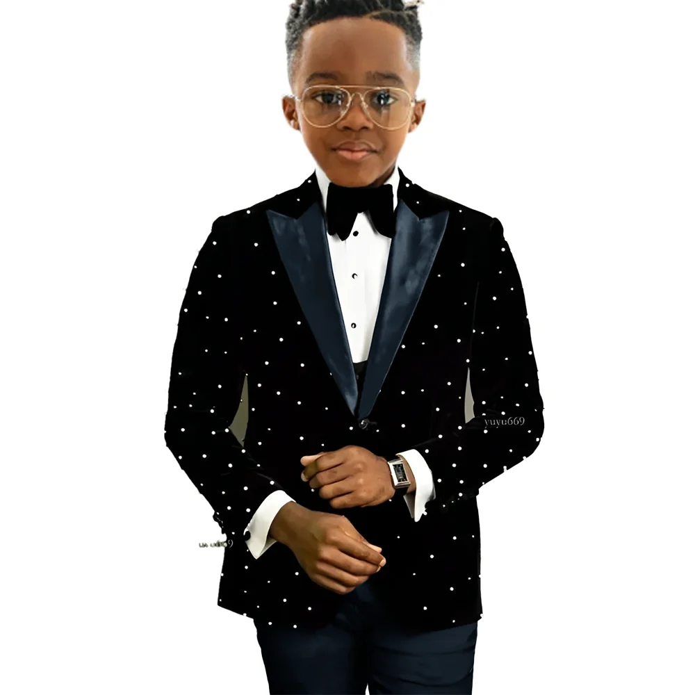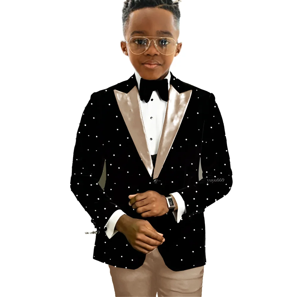 Luxury Beads Boy Wedding Tuxedos Kids Wear Party Prom Slim Fit One Button Suits Custom 2-piece Set