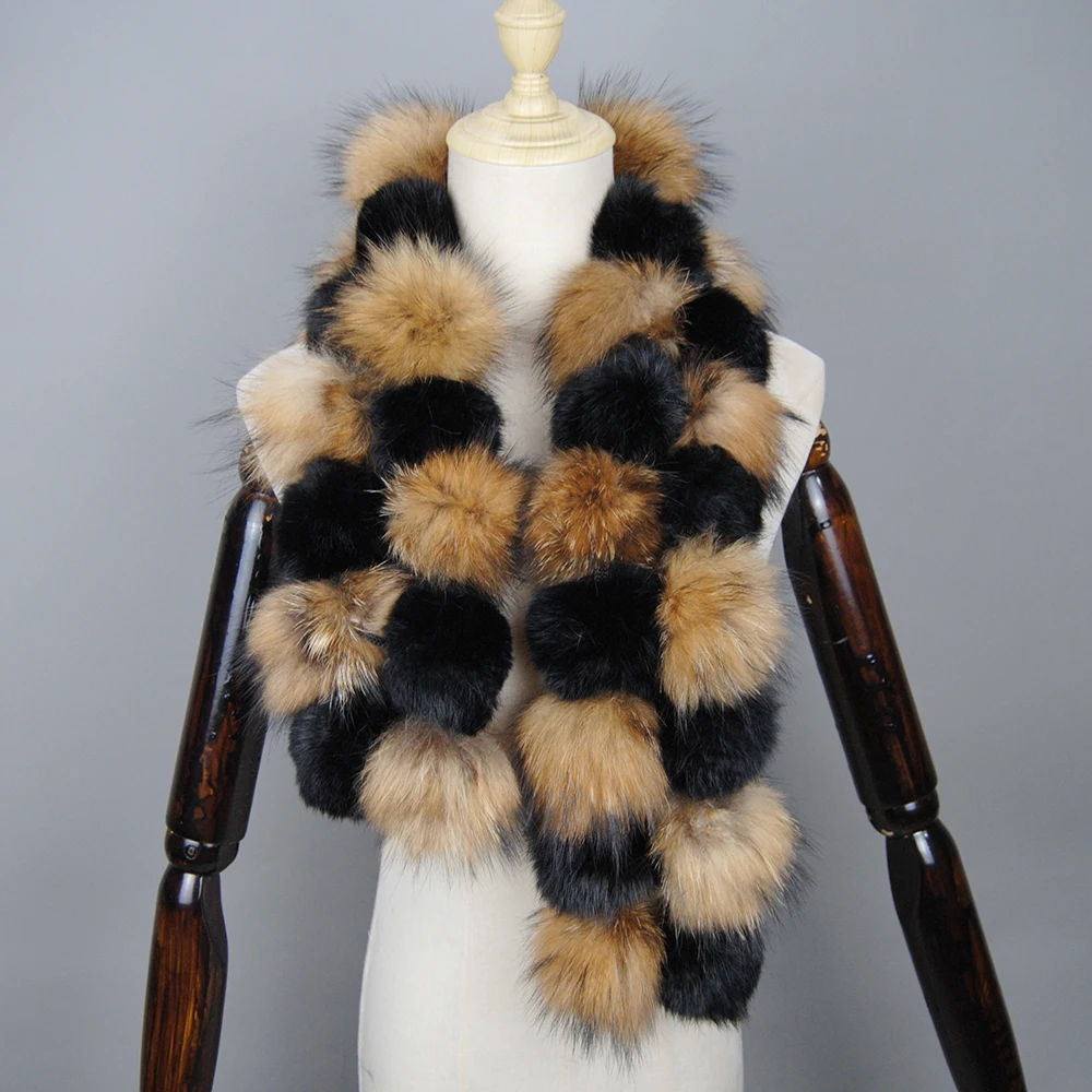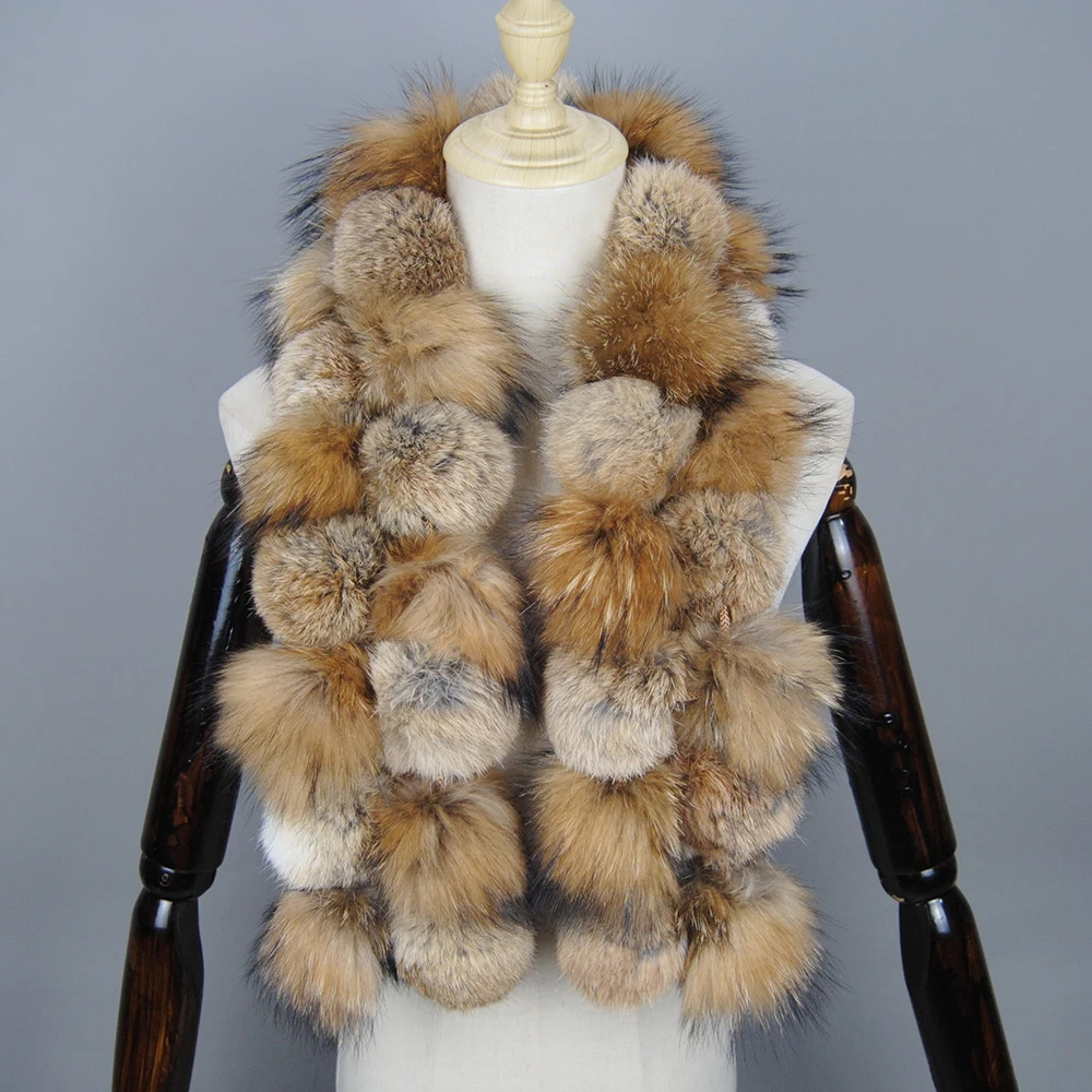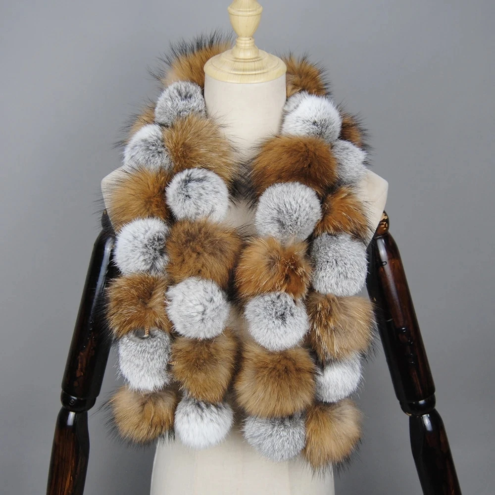 Luxury Brand Women Winter Natural Real Raccoon Fur Scarf Fashion Lady Warm Genuine Fox Fur Neckerchief Real Fox Fur Ring Scarves