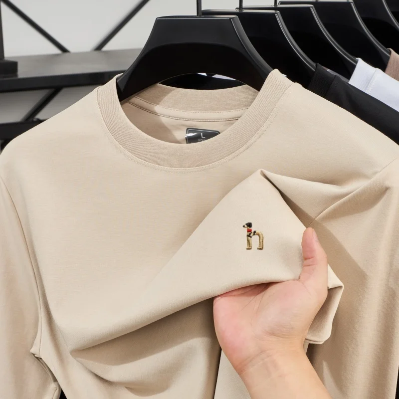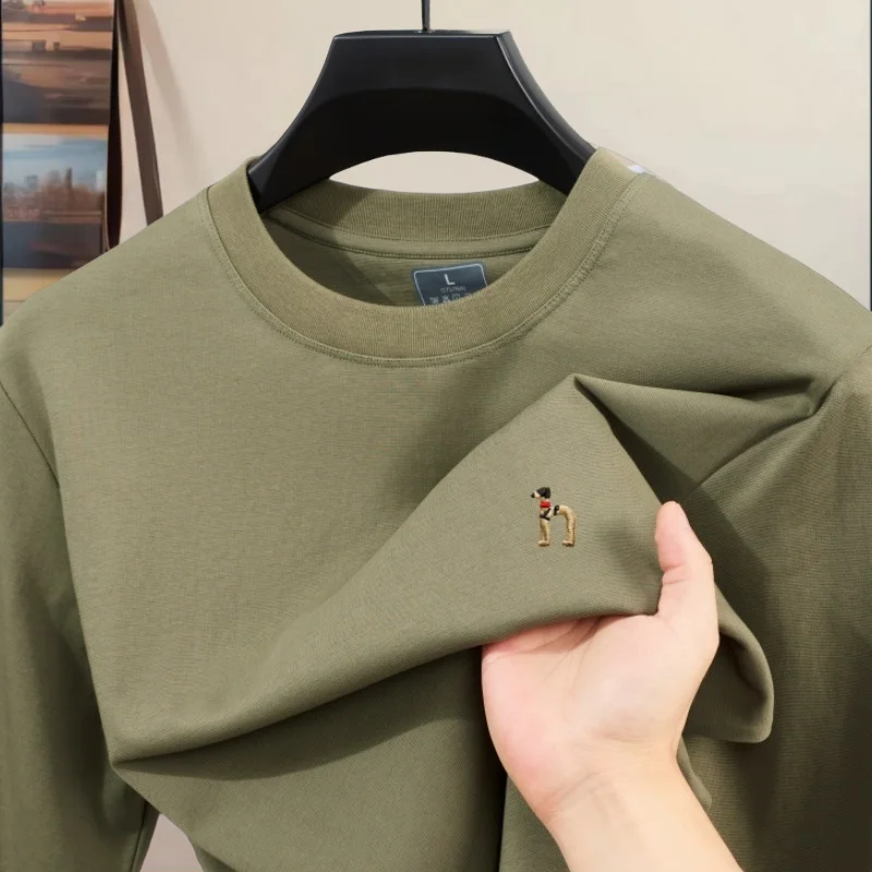 Luxury brand’s new comfortable round neck T-shirt for 2025 high-end men hot selling small dog embroidery casual long sleeved top