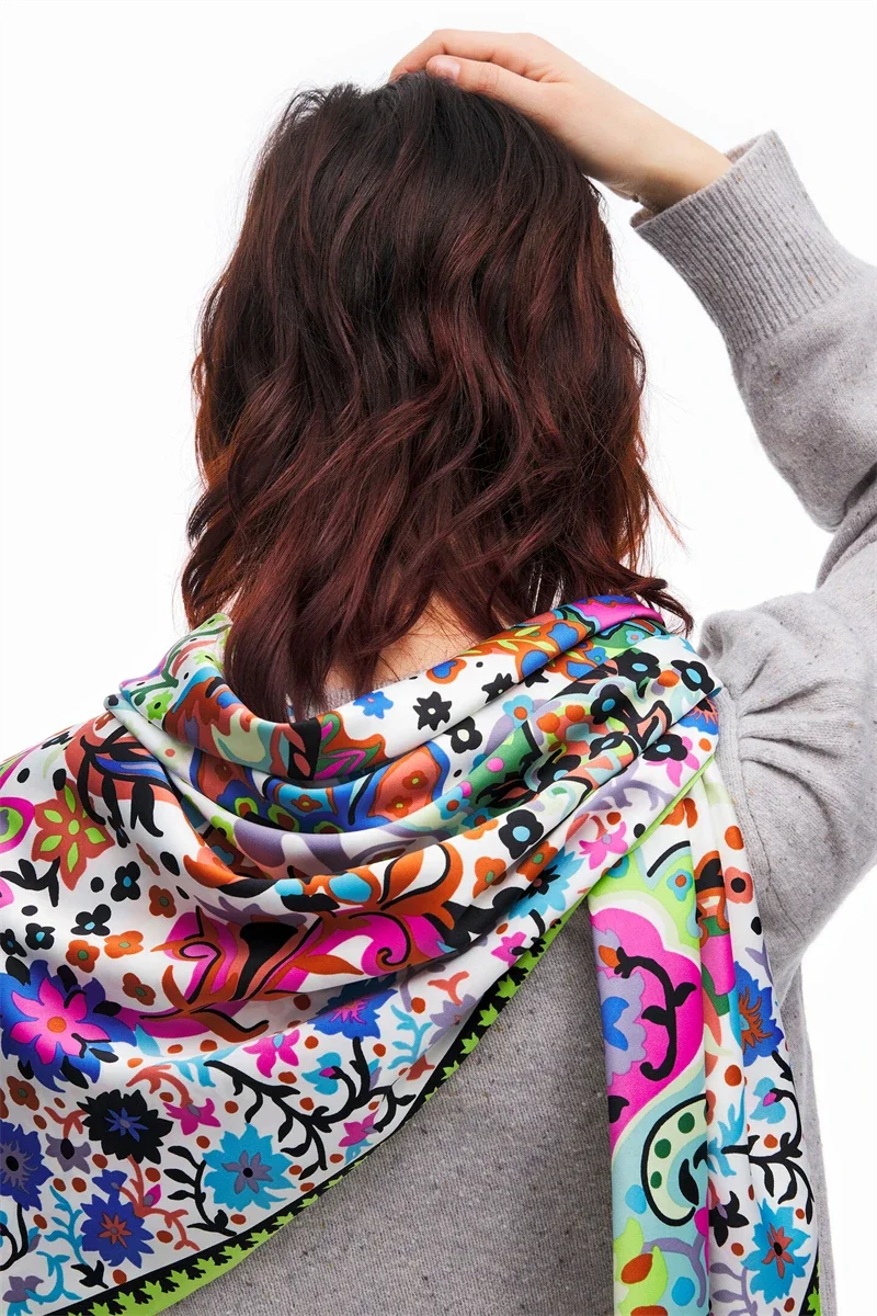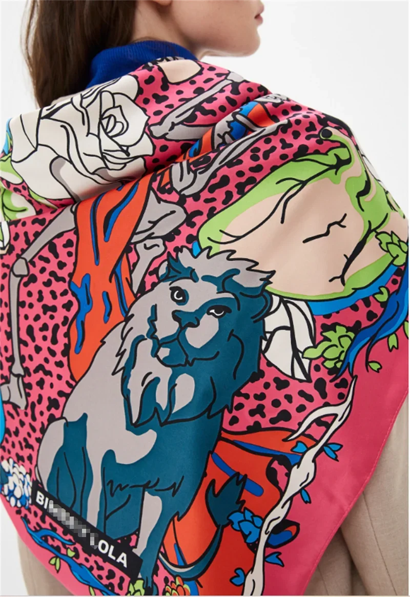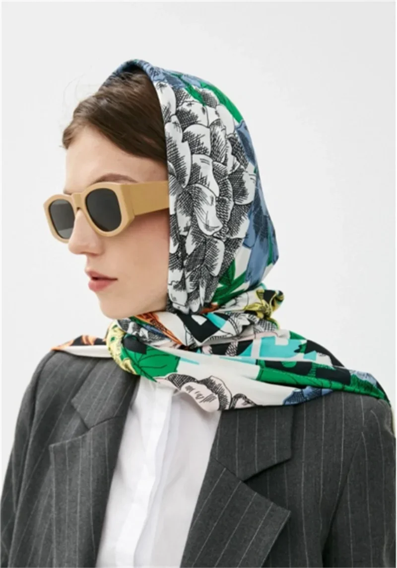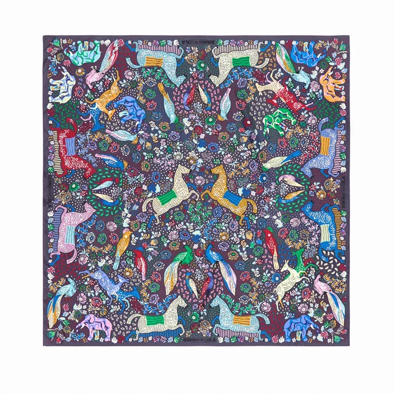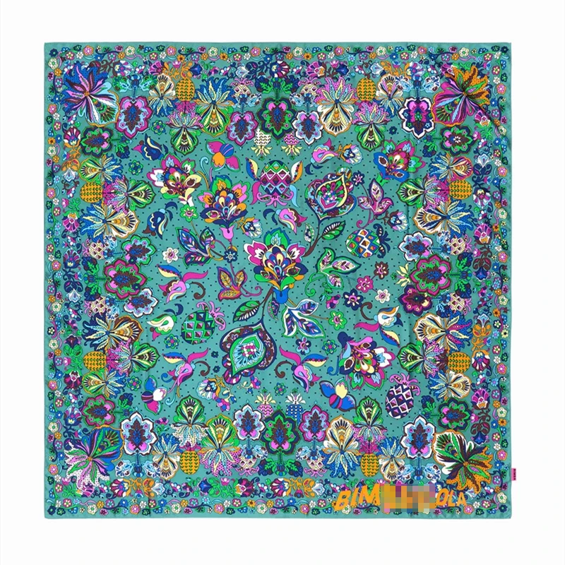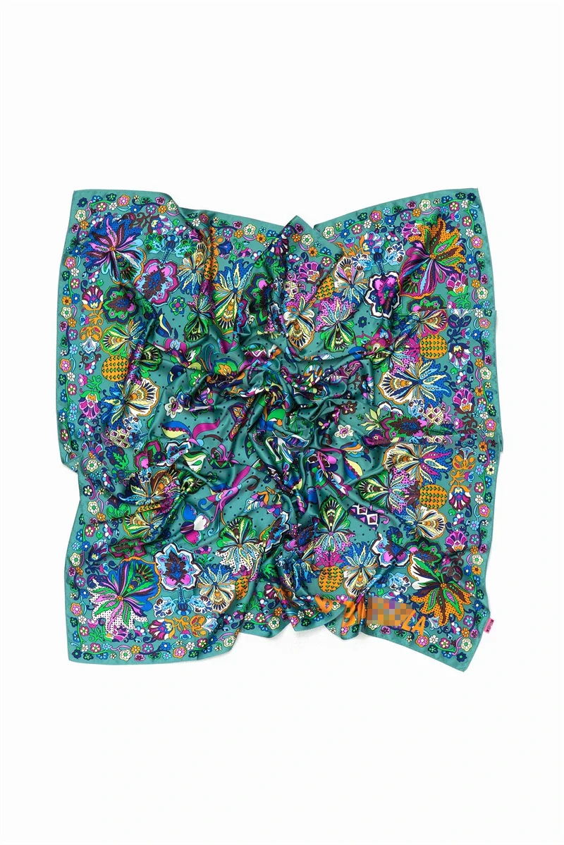 Luxury Design Extra Large Size Women Summer Fashion Sudoku Pattern Ocean Animal and Floral Pattern Bandana Square Scarf Beach
