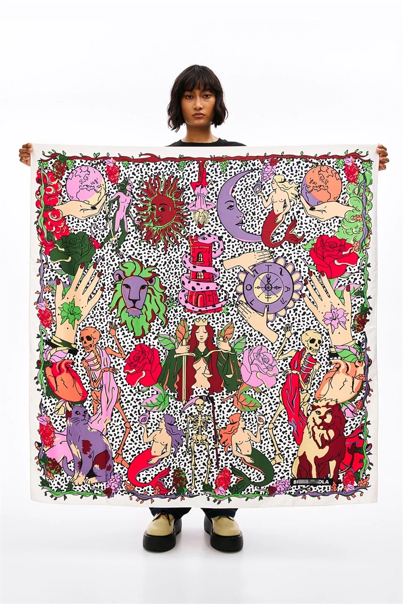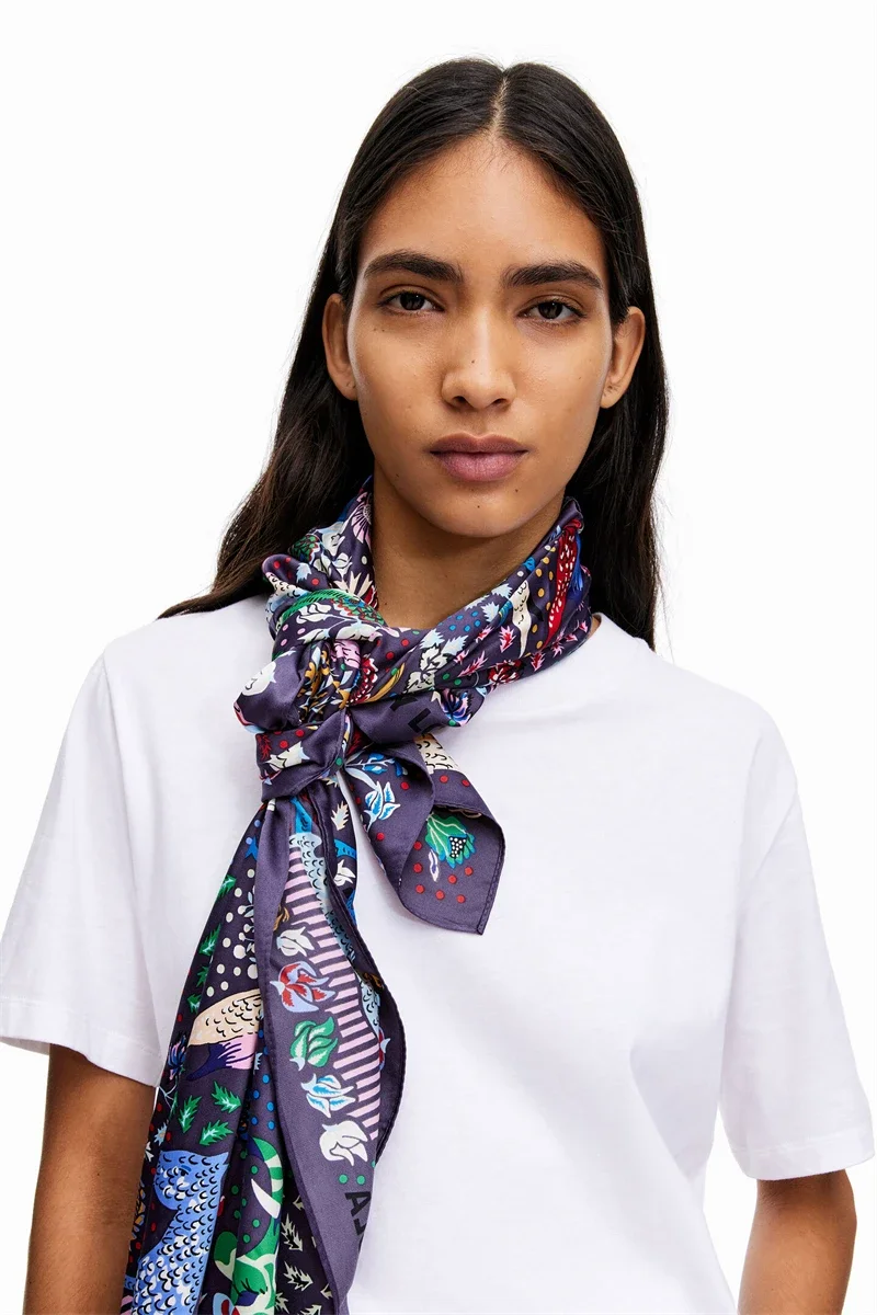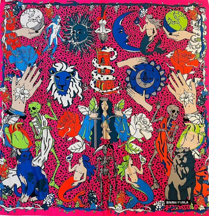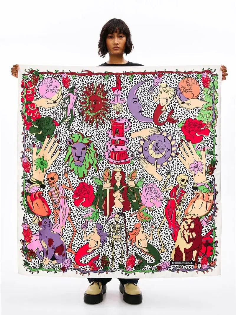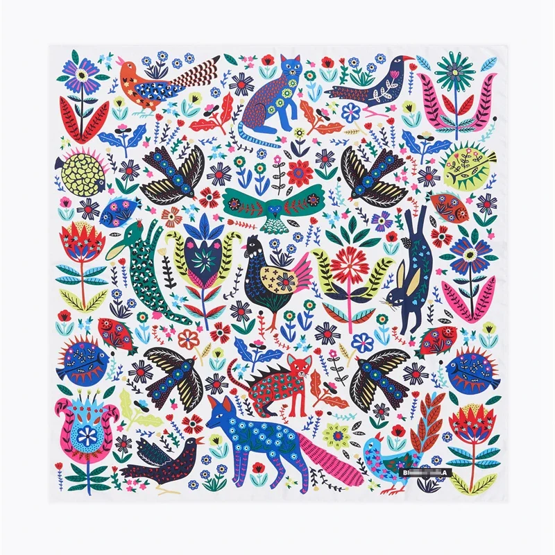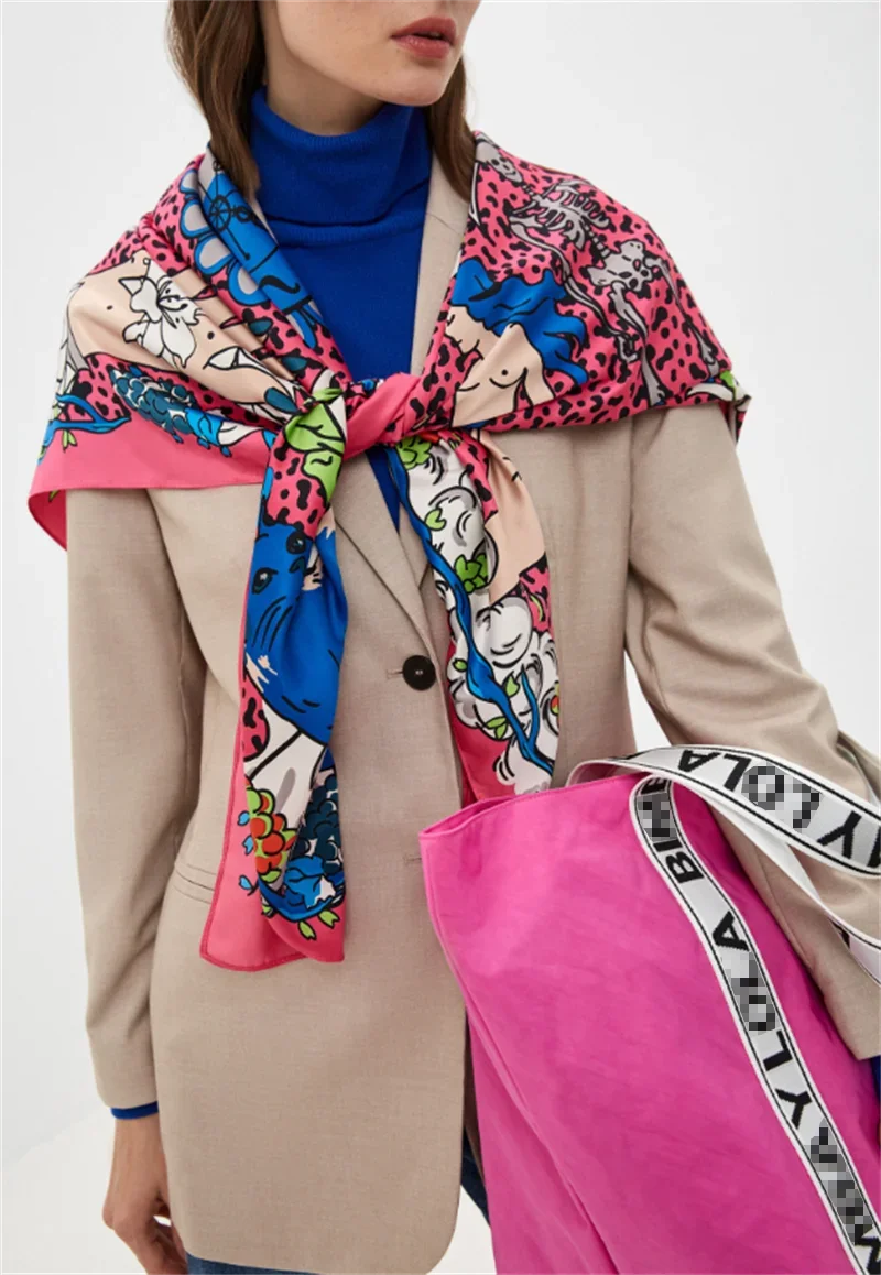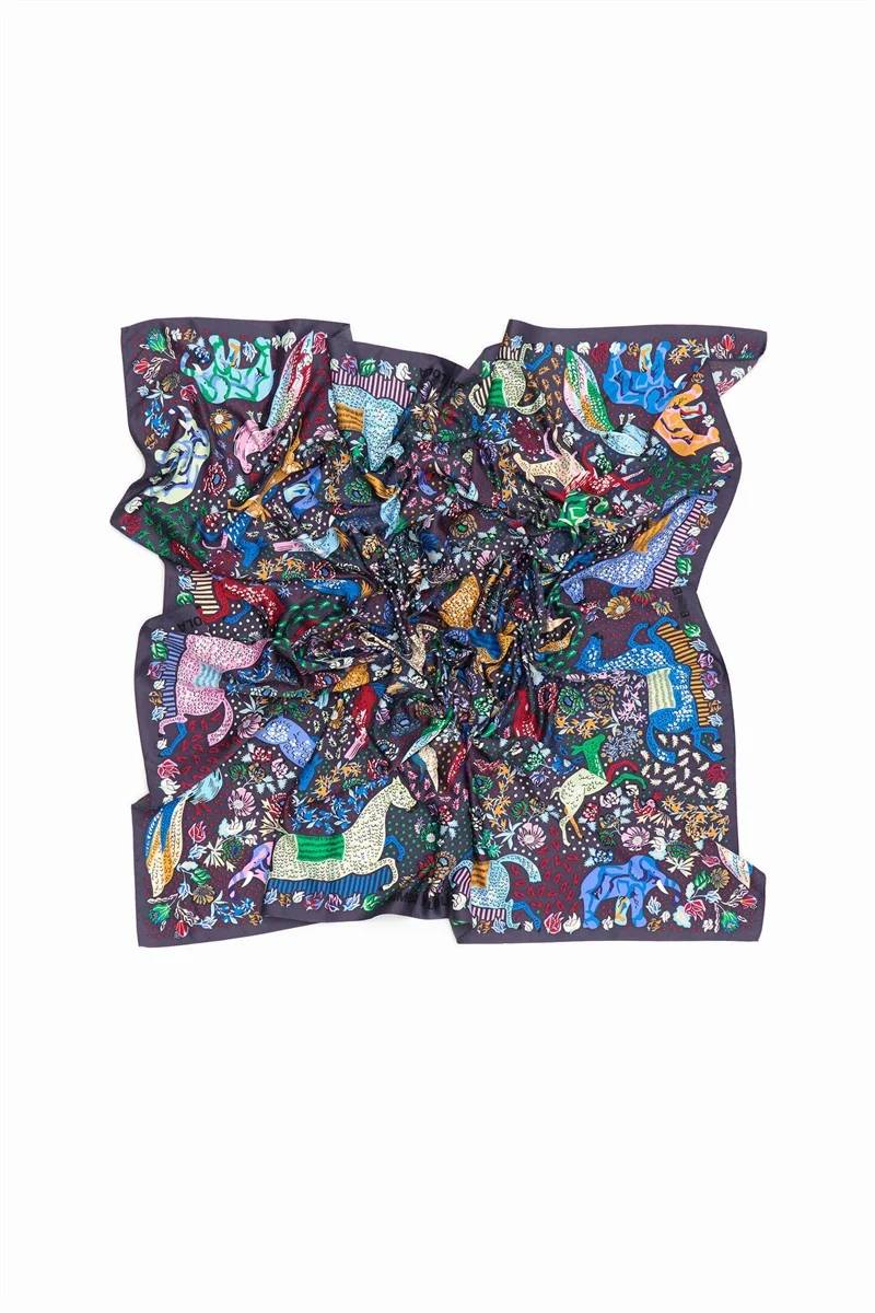 Luxury Design Extra Large Size Women Summer Fashion Sudoku Pattern Ocean Animal and Floral Pattern Bandana Square Scarf Beach