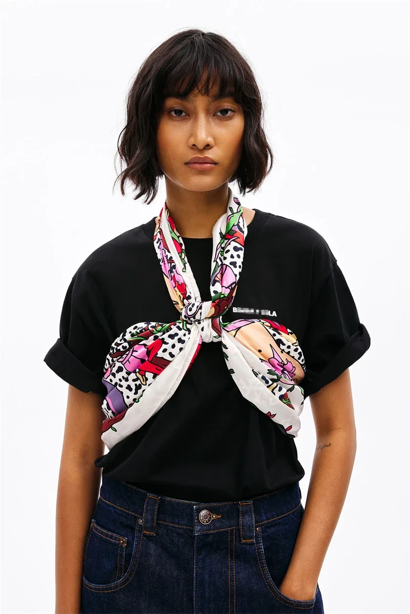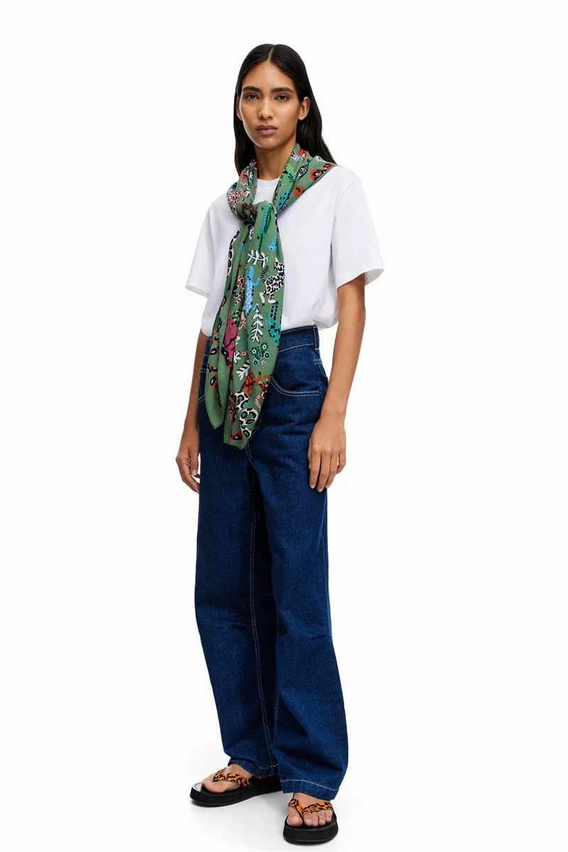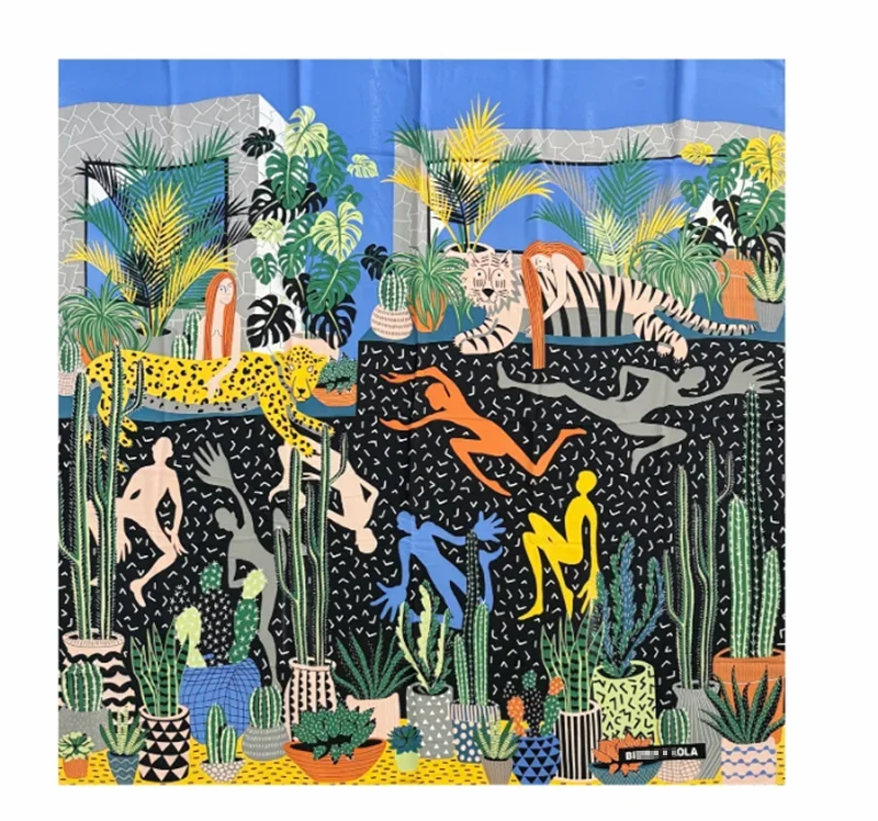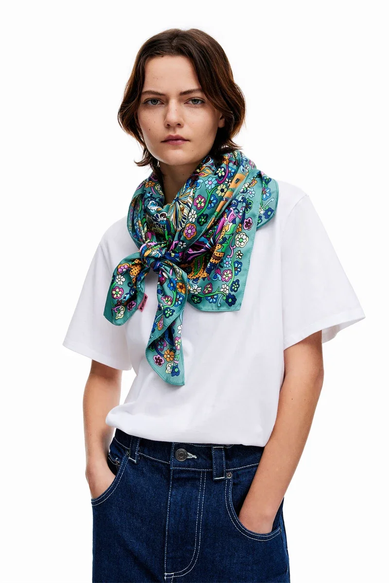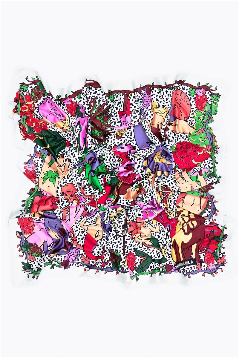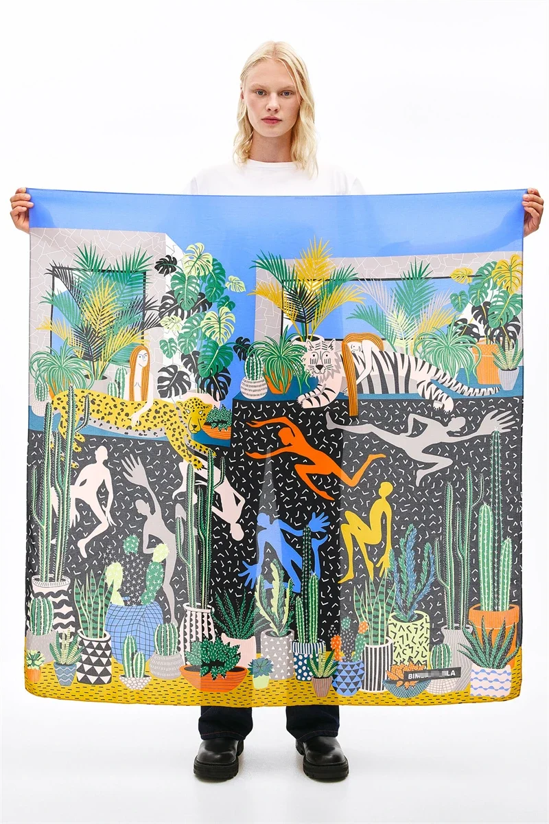 Luxury Design Extra Large Size Women Summer Fashion Sudoku Pattern Ocean Animal and Floral Pattern Bandana Square Scarf Beach