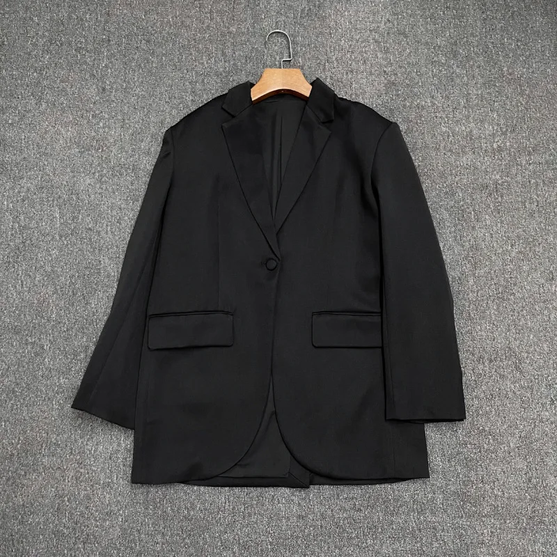 LUXURY Minimalist Blazer for Women with A High-end Feel, Crisp Black One Button Loose Jacket Coat, 2025 Autumn