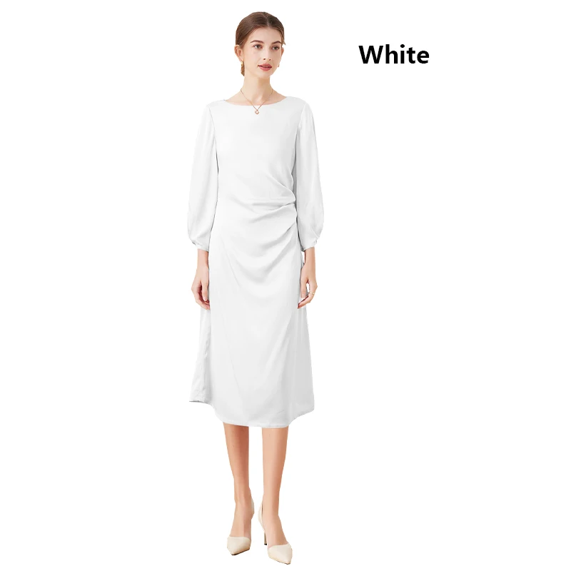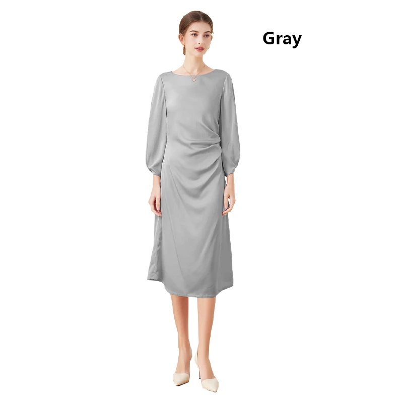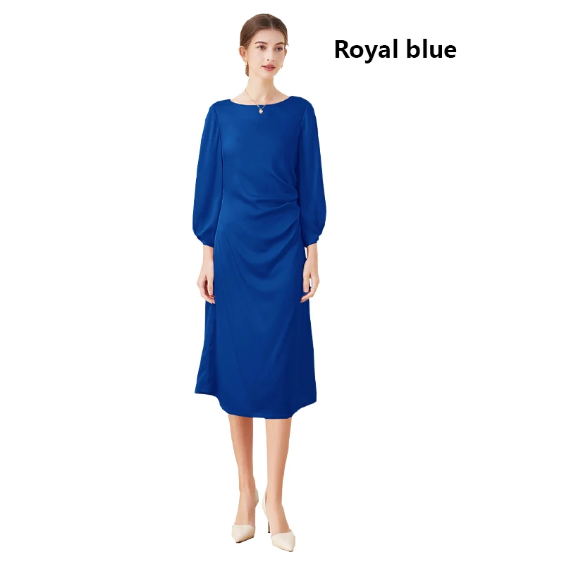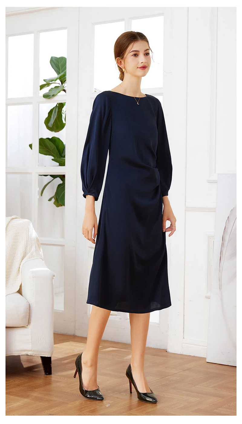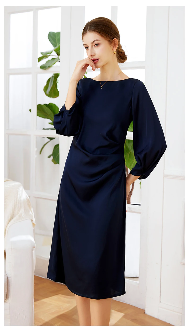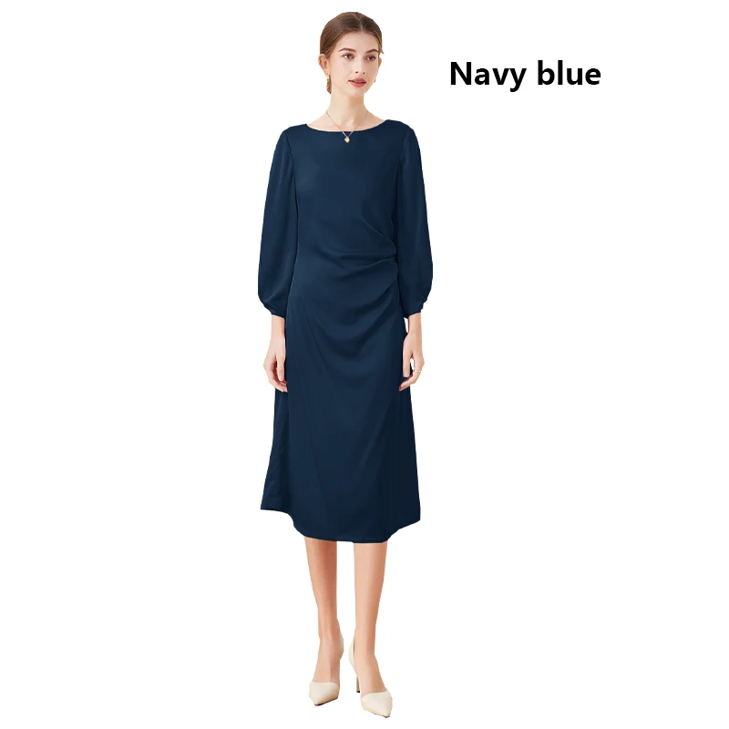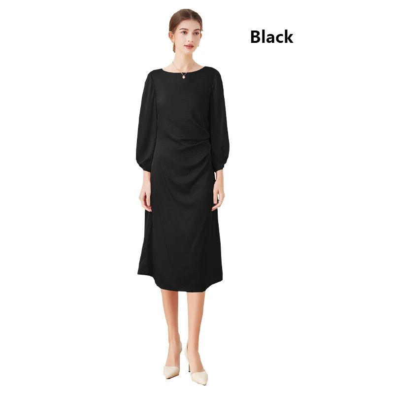 Luxury Mulberry Silk Dress Black 100% Silk Nine-point Sleeve Pleated Temperament Fashion Dress Outdoor Business Activities