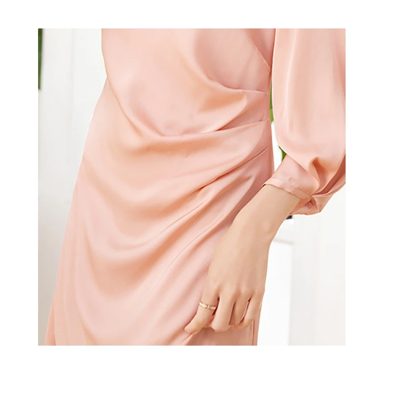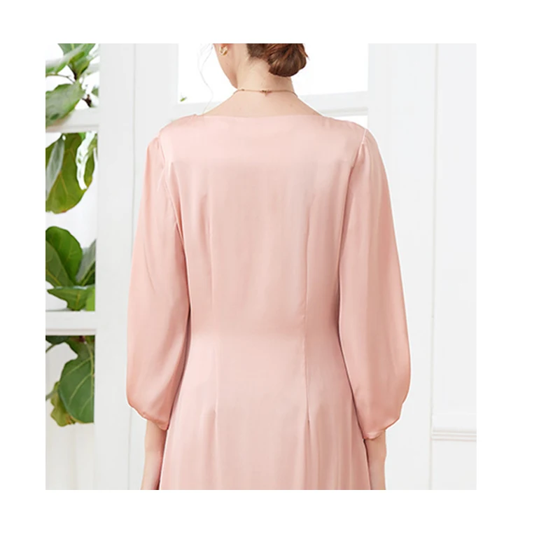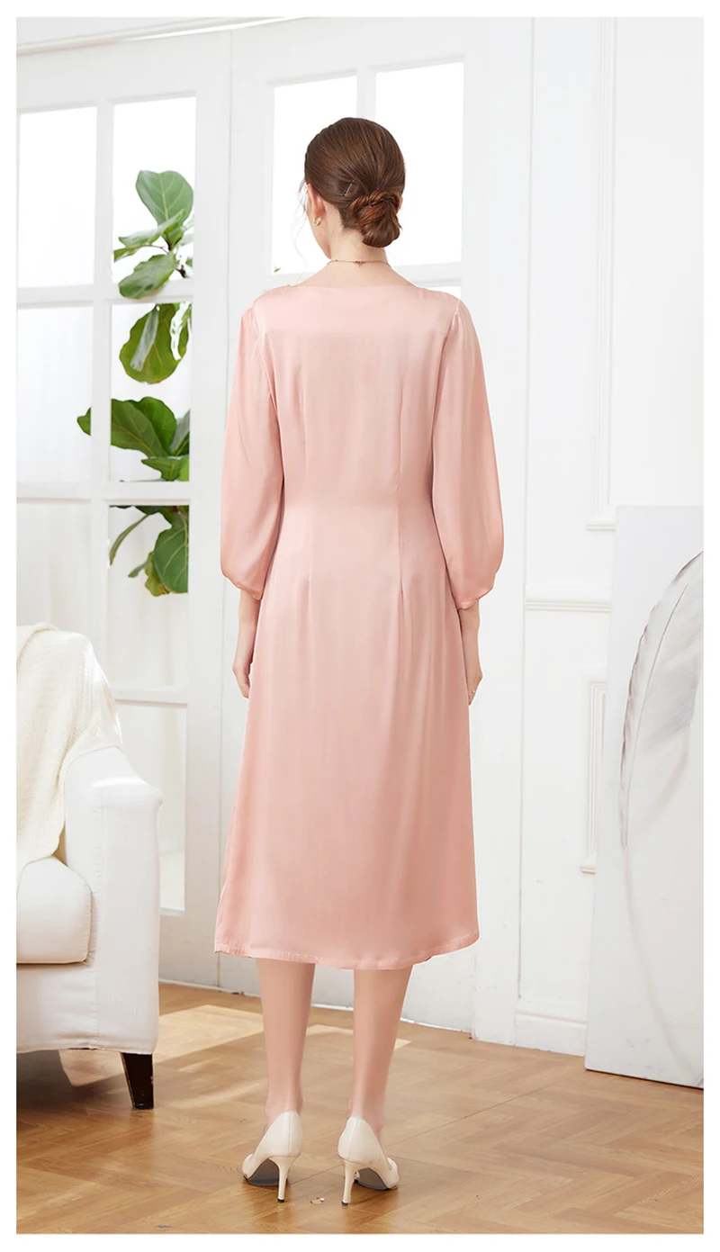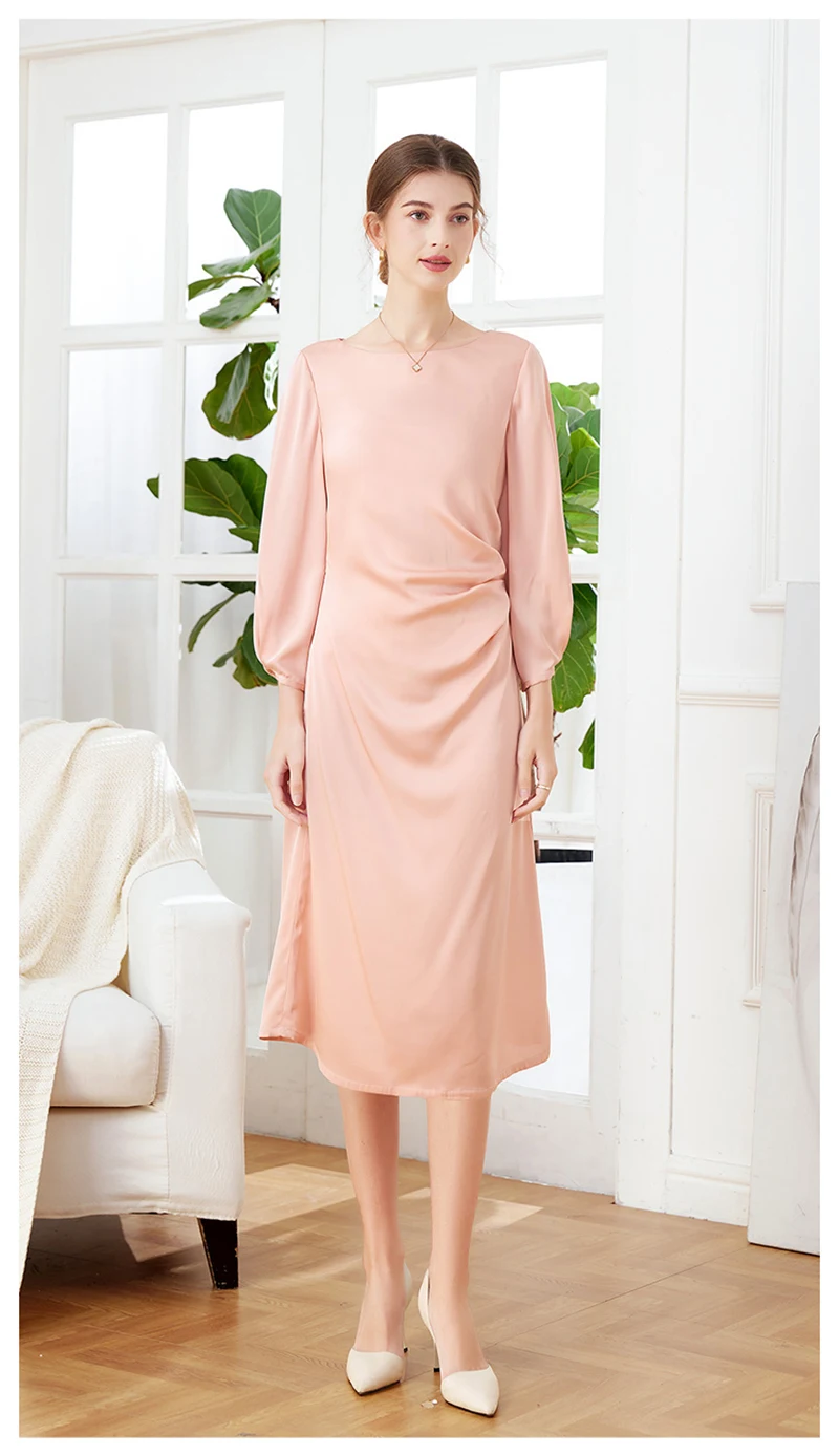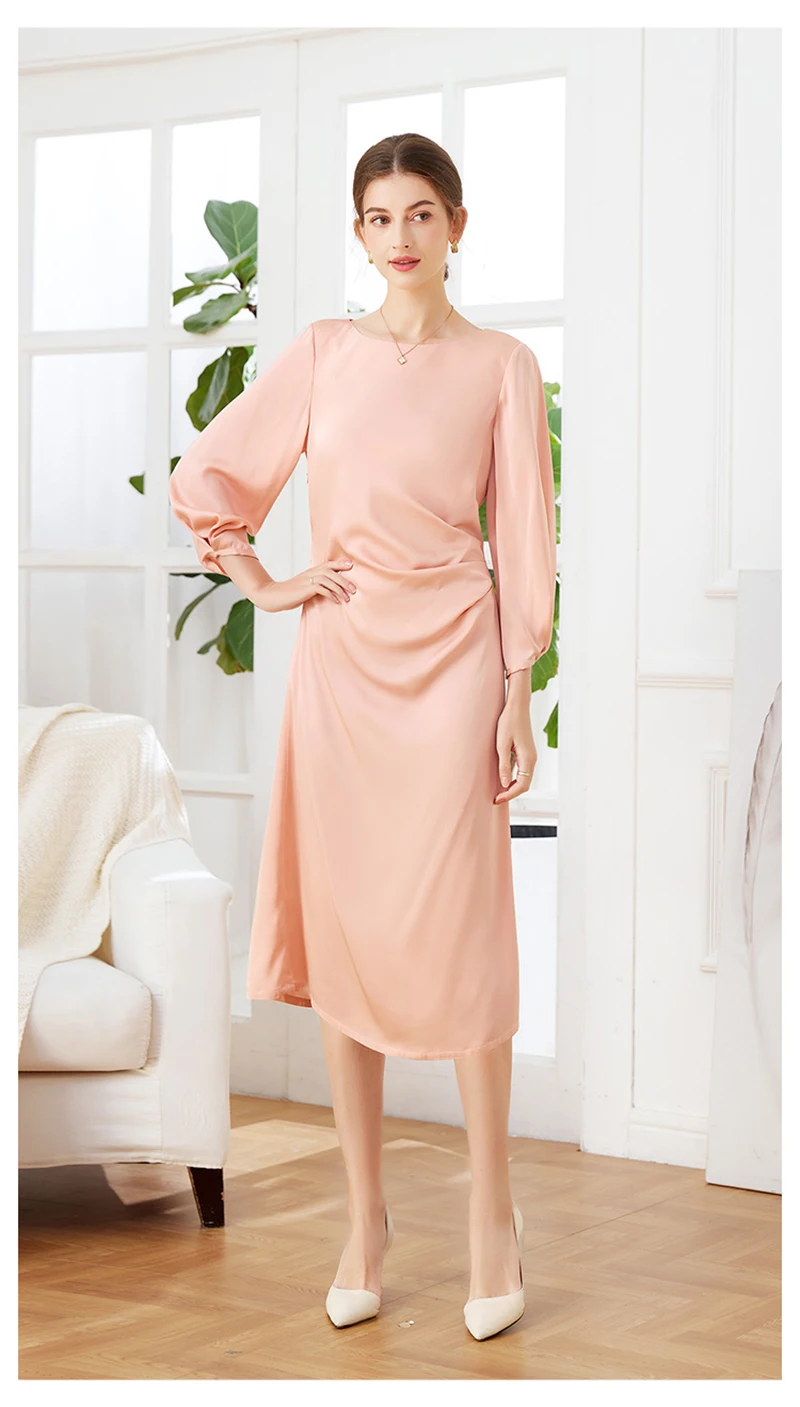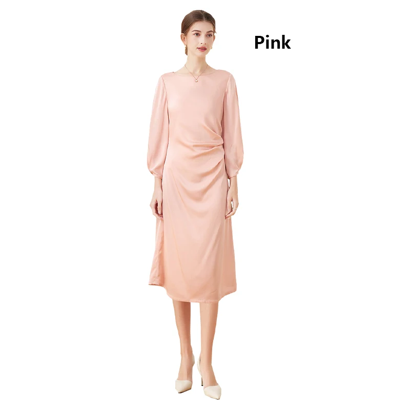 Luxury Mulberry Silk Dress Black 100% Silk Nine-point Sleeve Pleated Temperament Fashion Dress Outdoor Business Activities