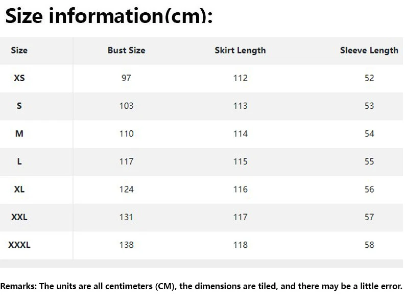 - Sleeve Length(cm): Wrist