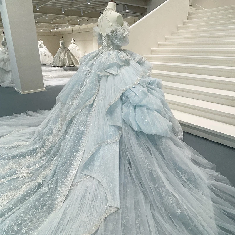Luxury Wedding Dresses Lace Ball Gown Halter High Quality Dress Customized GT003 Embroidery Robe De Mariage 2023 nouveauté