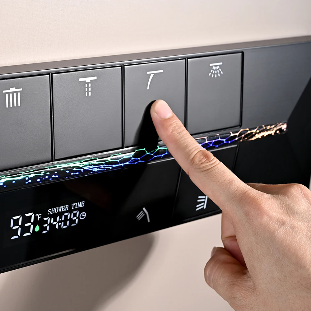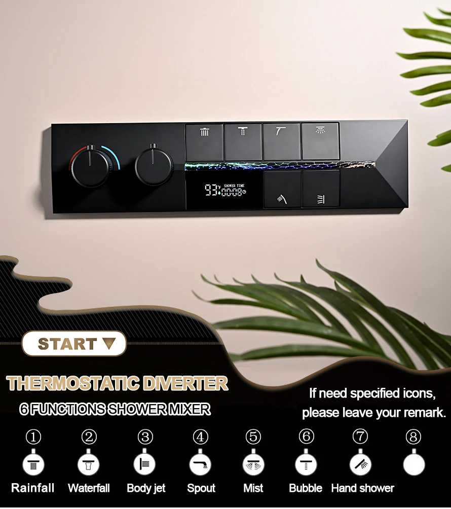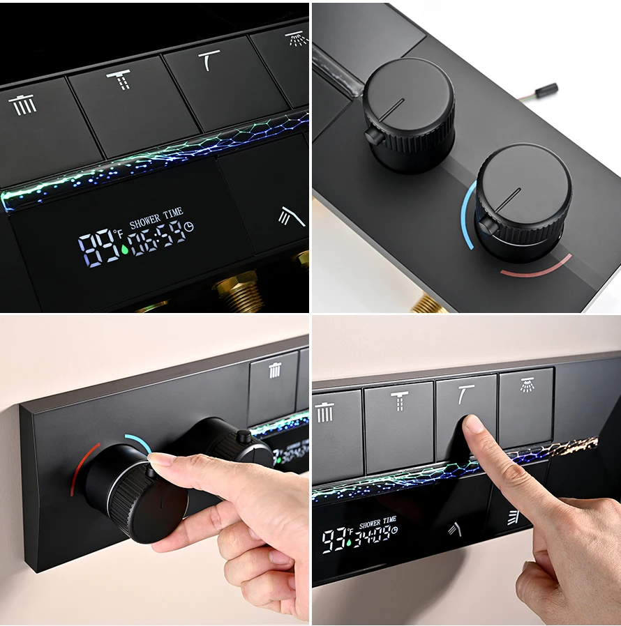 M Boenn Push Button Type Black Shower Mixer Bathroom Faucet Smart Temperature Display Thermostatic Diverter Shower Controller