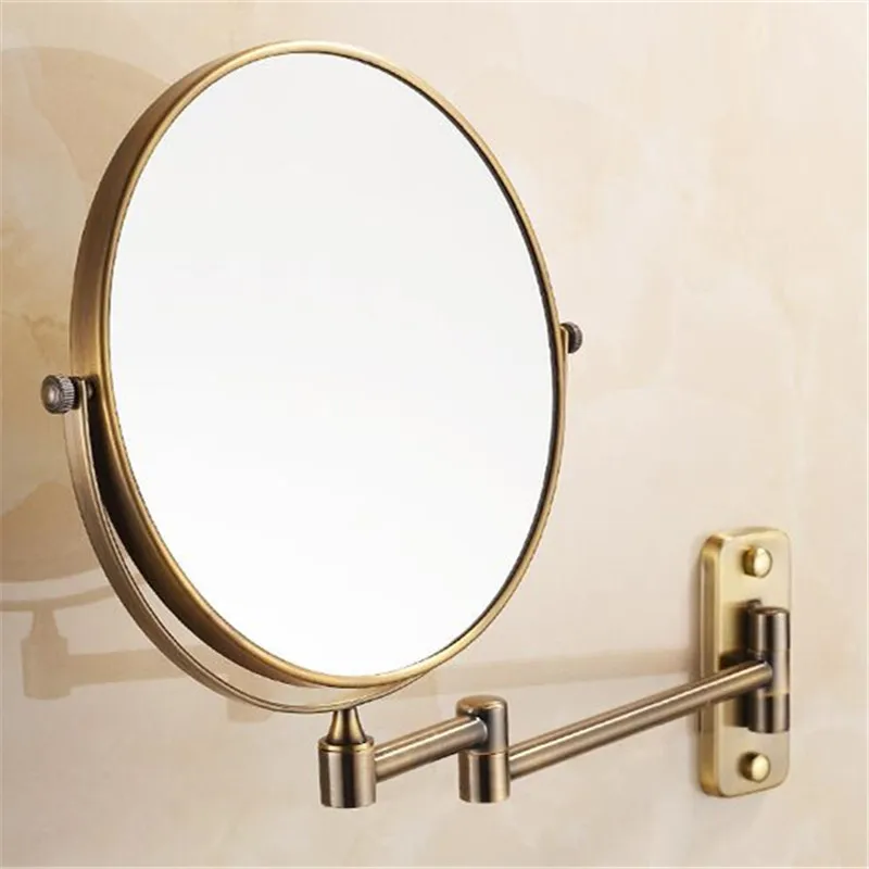 Bath Mirrors 3 x Magnifying Mirror of Bathroom Makeup Mirror Folding Shave 8" Dual Side Antique Brass Wall Round Mirrors 1506F