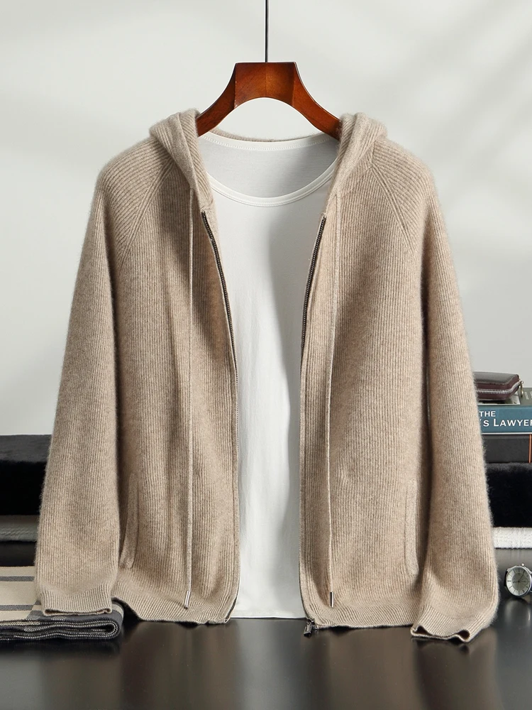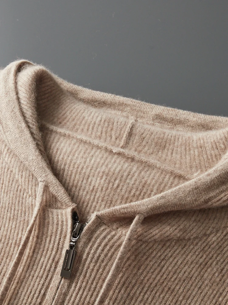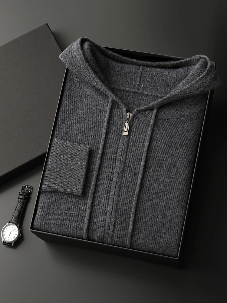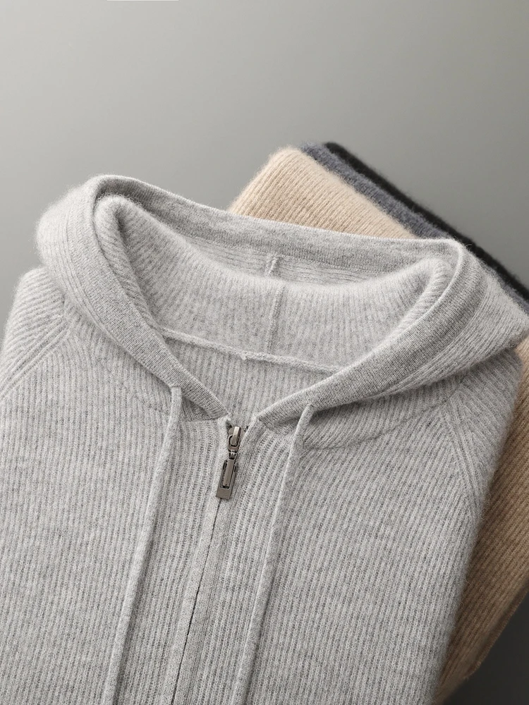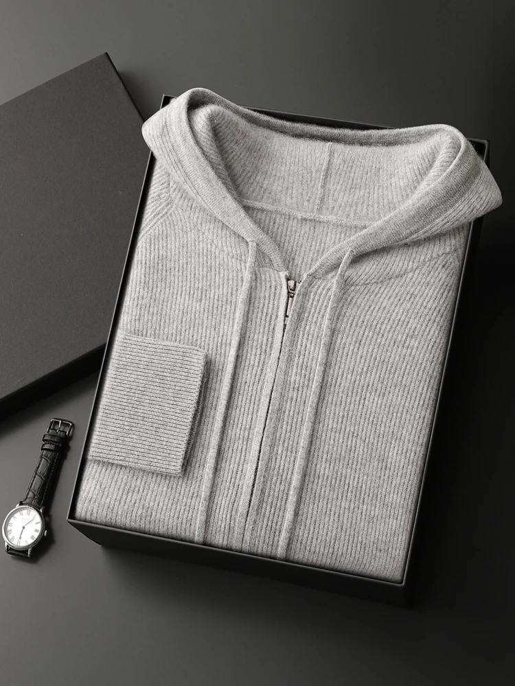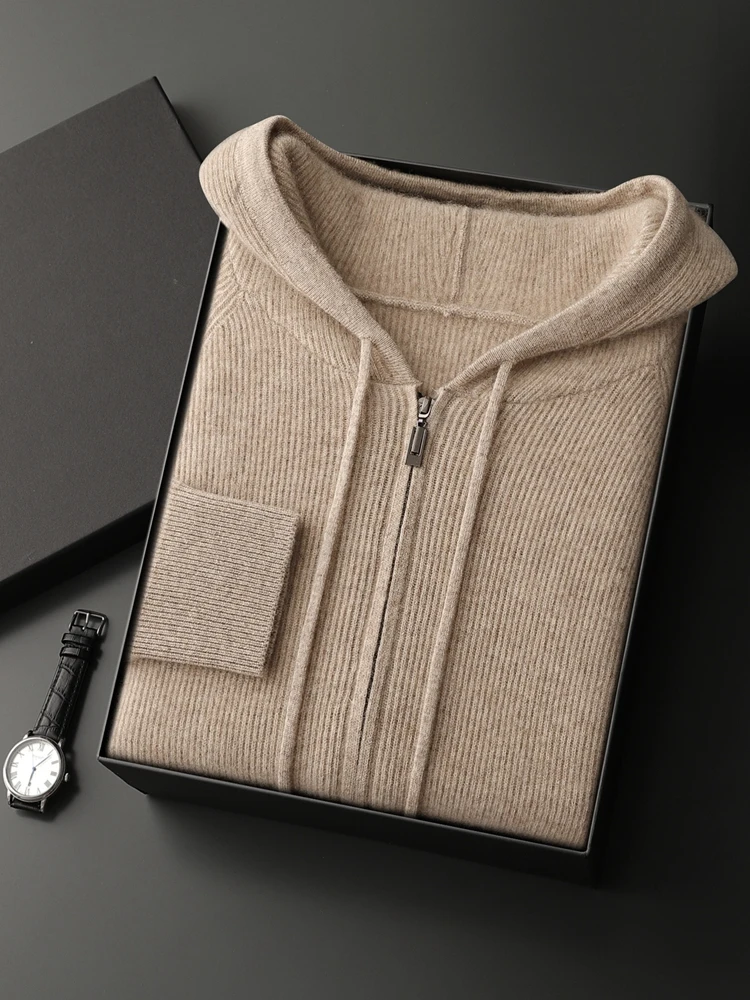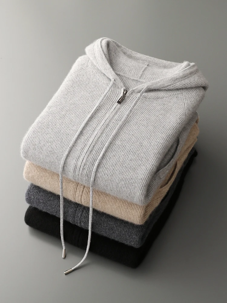 Men’s 100% Cashmere Hoodie Sweater Thick Zipper Cardigan Smart Casual Soft Warm High Quaity Autumn Winter Knitted Coat Top