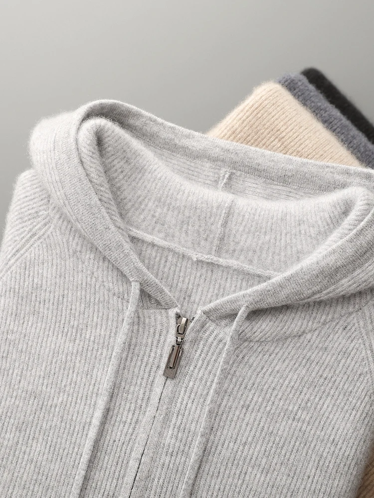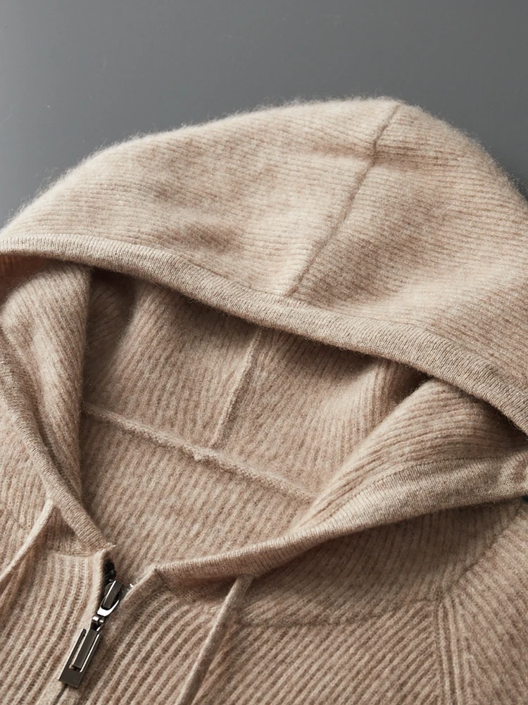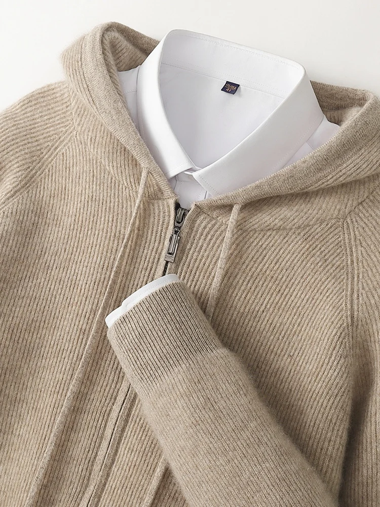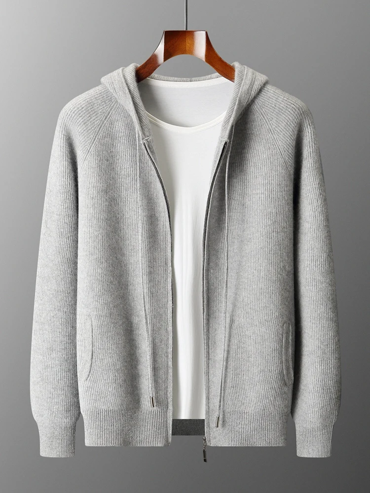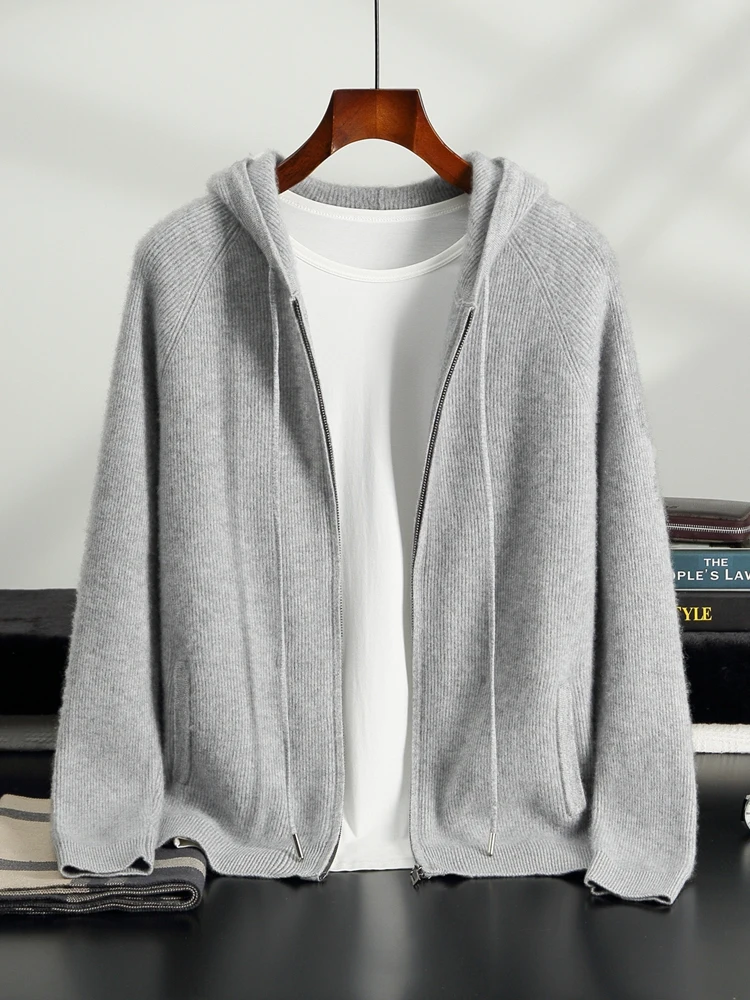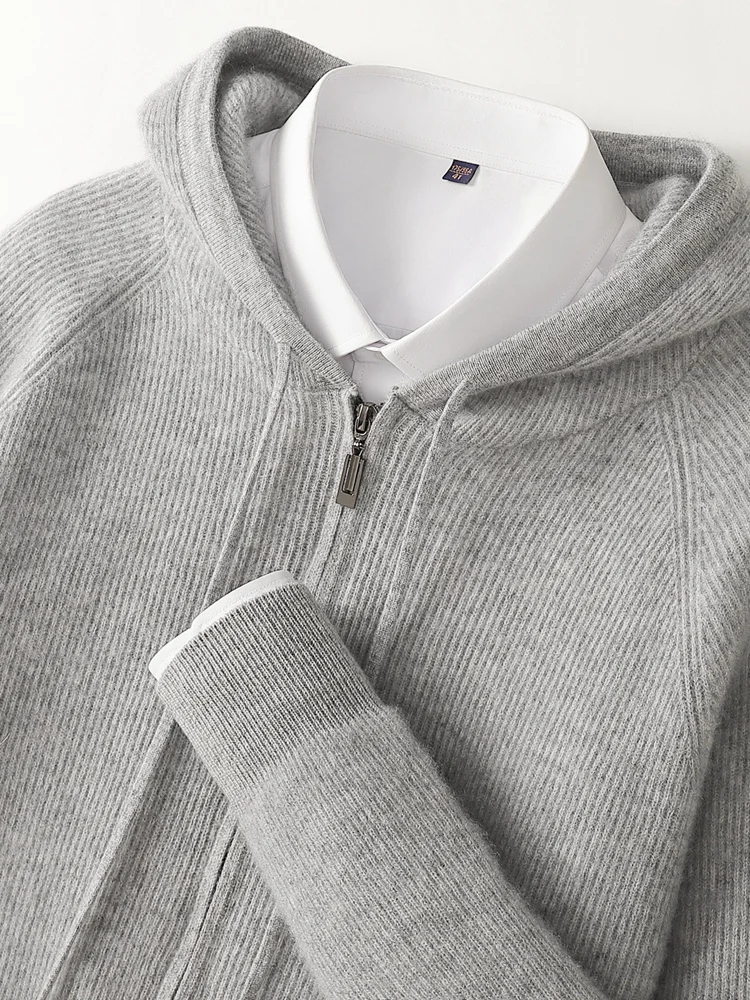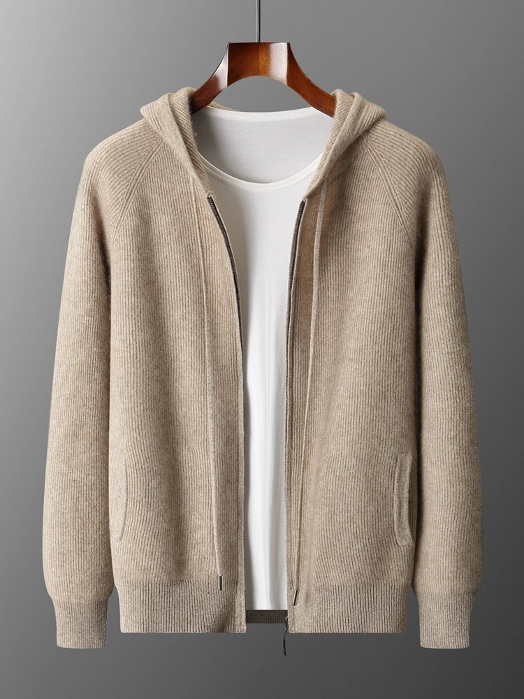 Men’s 100% Cashmere Hoodie Sweater Thick Zipper Cardigan Smart Casual Soft Warm High Quaity Autumn Winter Knitted Coat Top
