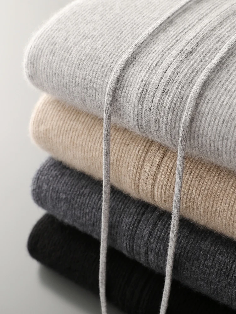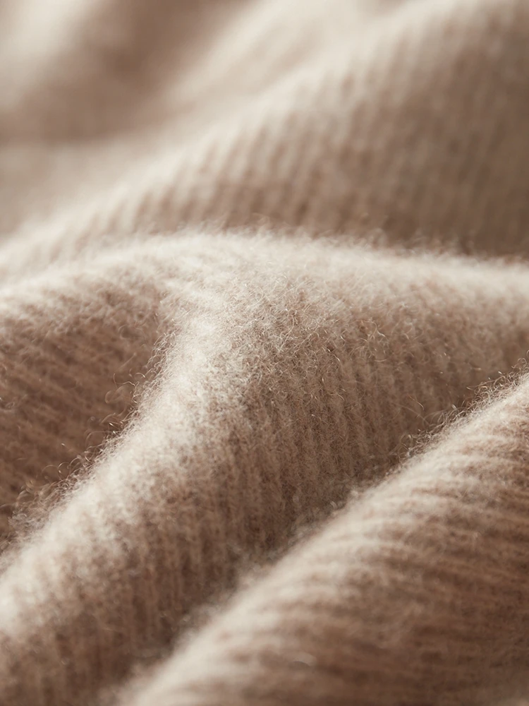 Fiber characteristics:The fiber diameter of cashmere is smaller than wool, the texture is more delicate and soft, and the scale structure of cashmere is smaller, making its thermal performance better than wool. Wool fibers are relatively thick, hard in texture, and not as warm as cashmere.