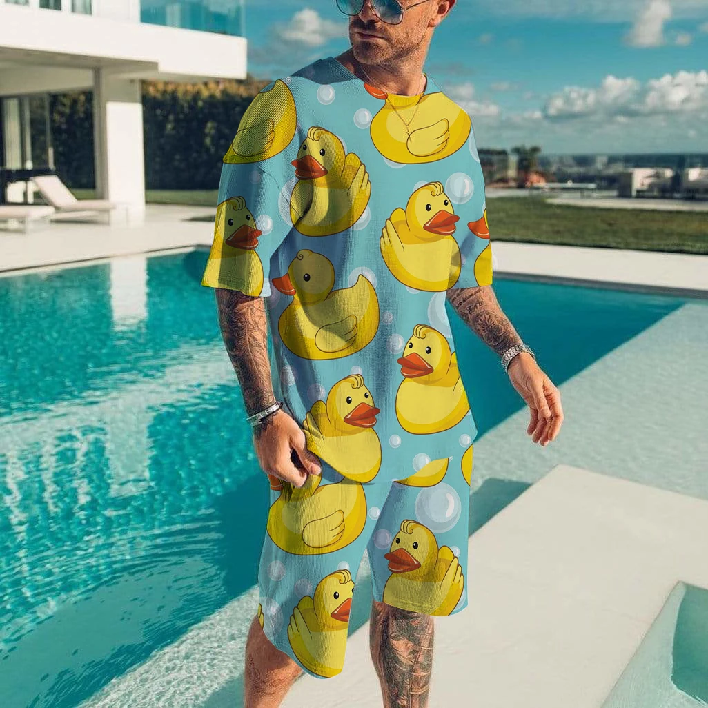 Men’s T-shirt Sets Duck Panda 3D Print Fashion Tracksuit T Shirts Shorts 2 Pieces Male Kid Streetwear Oversized Suit Sportswear