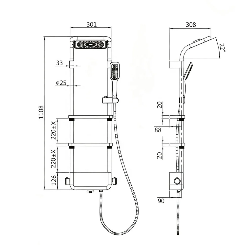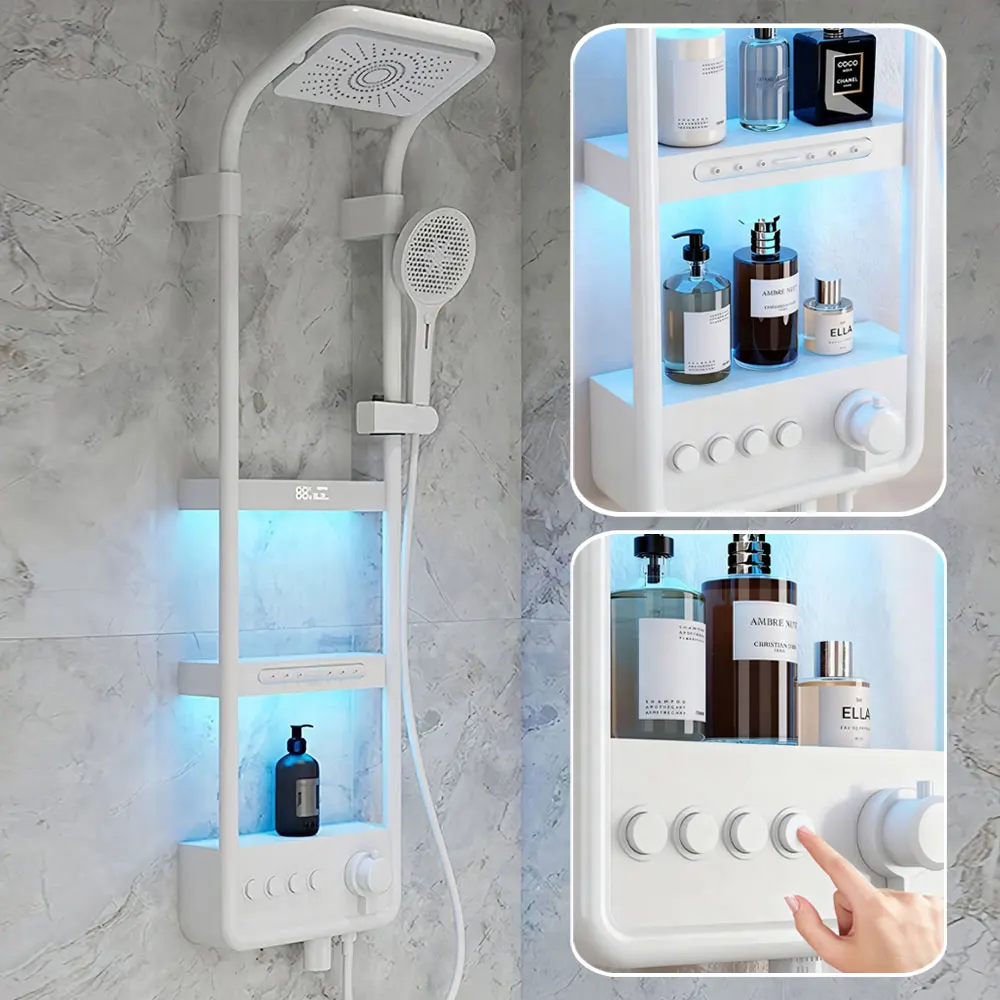 Modern High End Bathroom Shower Faucet Set Rainfall Waterfall Mixer Taps Smart LED Display Rain Showers Panel System with Lamp