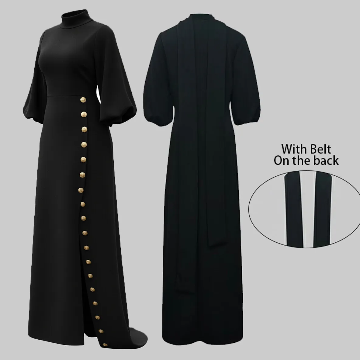 Modigirl Wedding Prom Evening Gown Party Slit Maxi Dresses for Woman 2025 New Lace Up Gold Button Womens Black Autumn Long Dress