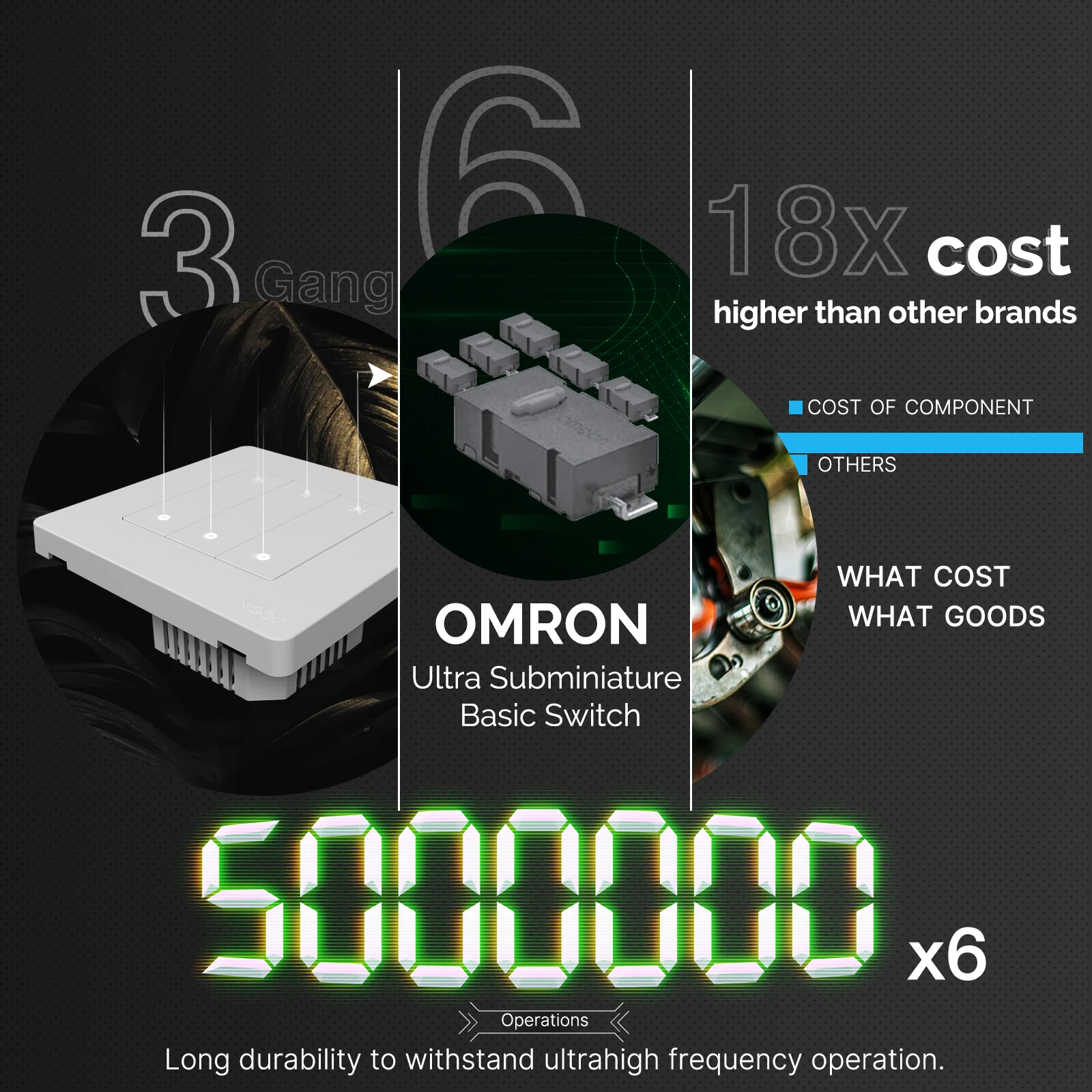 Indicator light mode can be set as switch on/off, switch location and LED off. Imagine when you get up in the darkness, there's a "star light" light up the switch. What a humanized design!