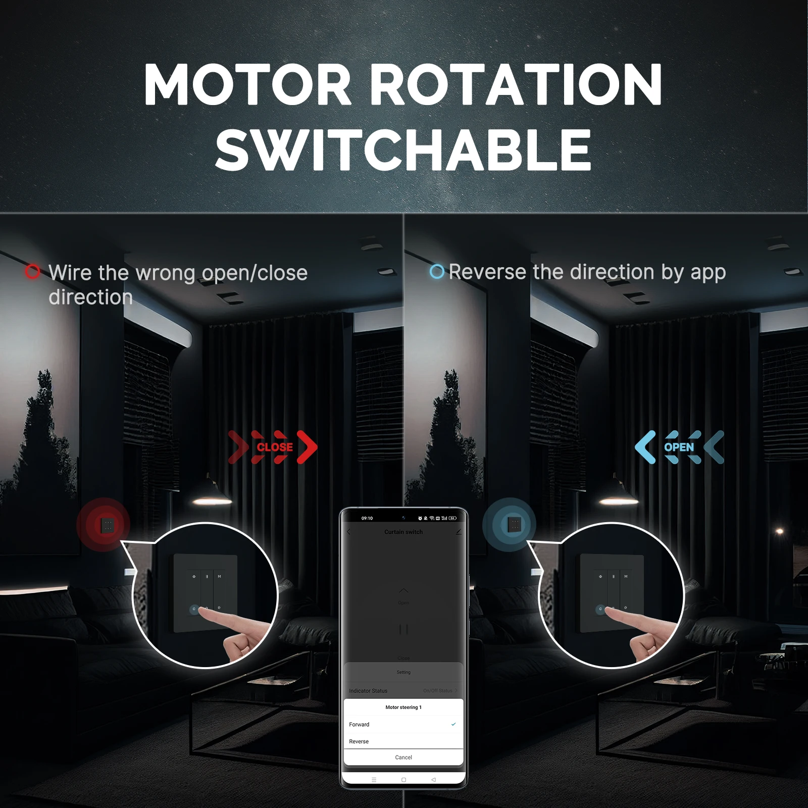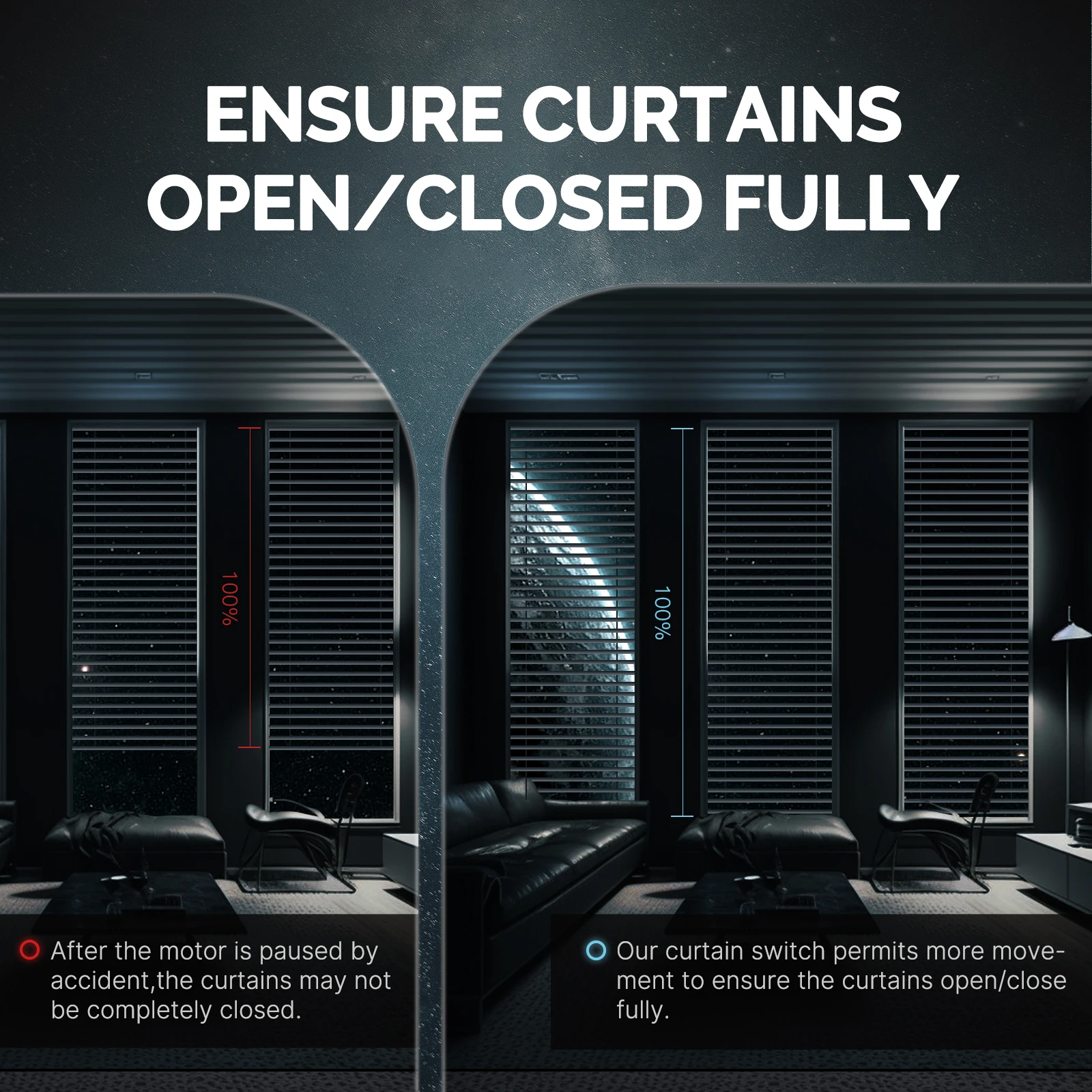 Our curtain smart switch permits full movement to to avoid the situation that the curtains cannot be open or closed completely caused by the suspended operation of motor.