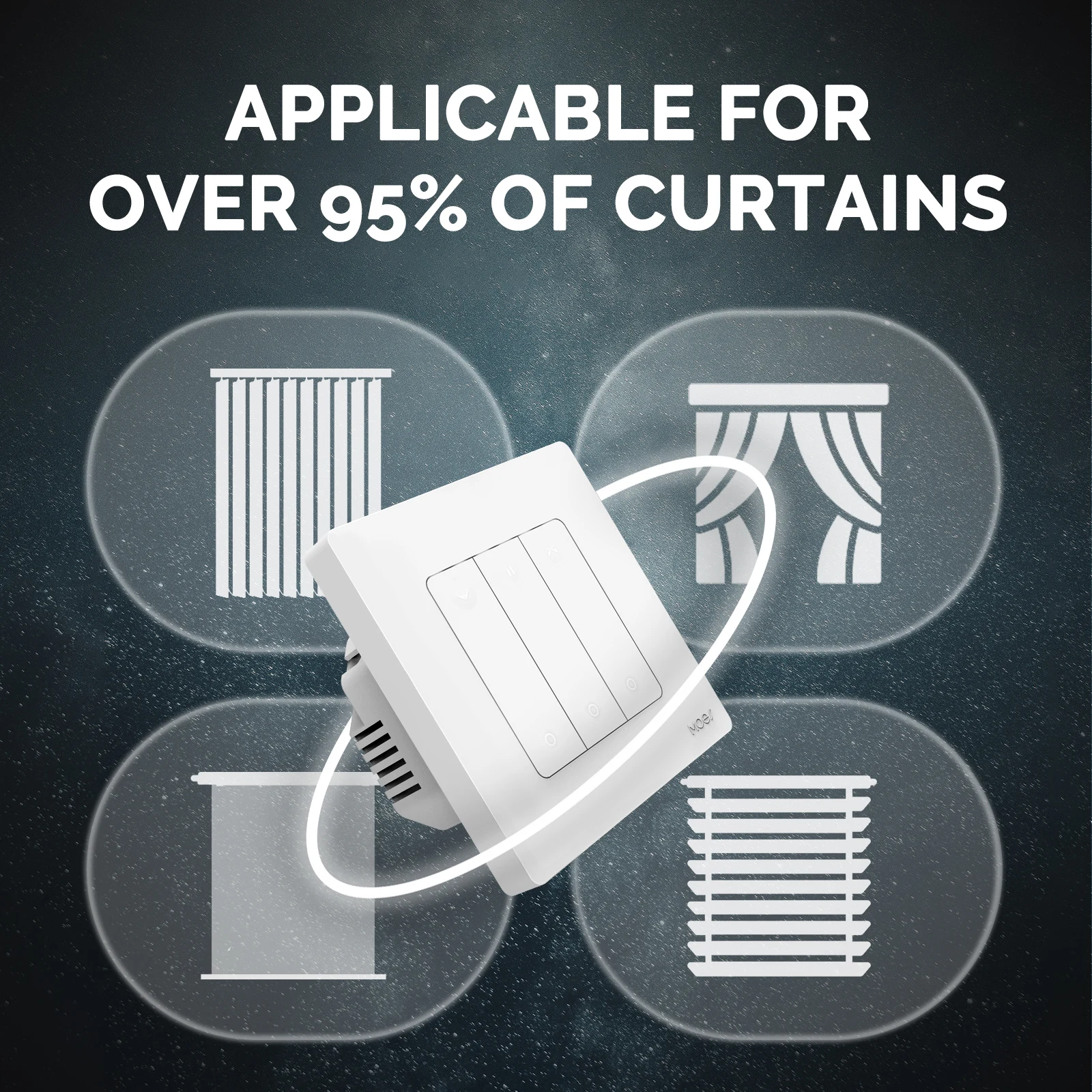 The smart switch has a wide application in various curtains in the market such as roller blinds, venetian blinds, cloth curtains, etc.
