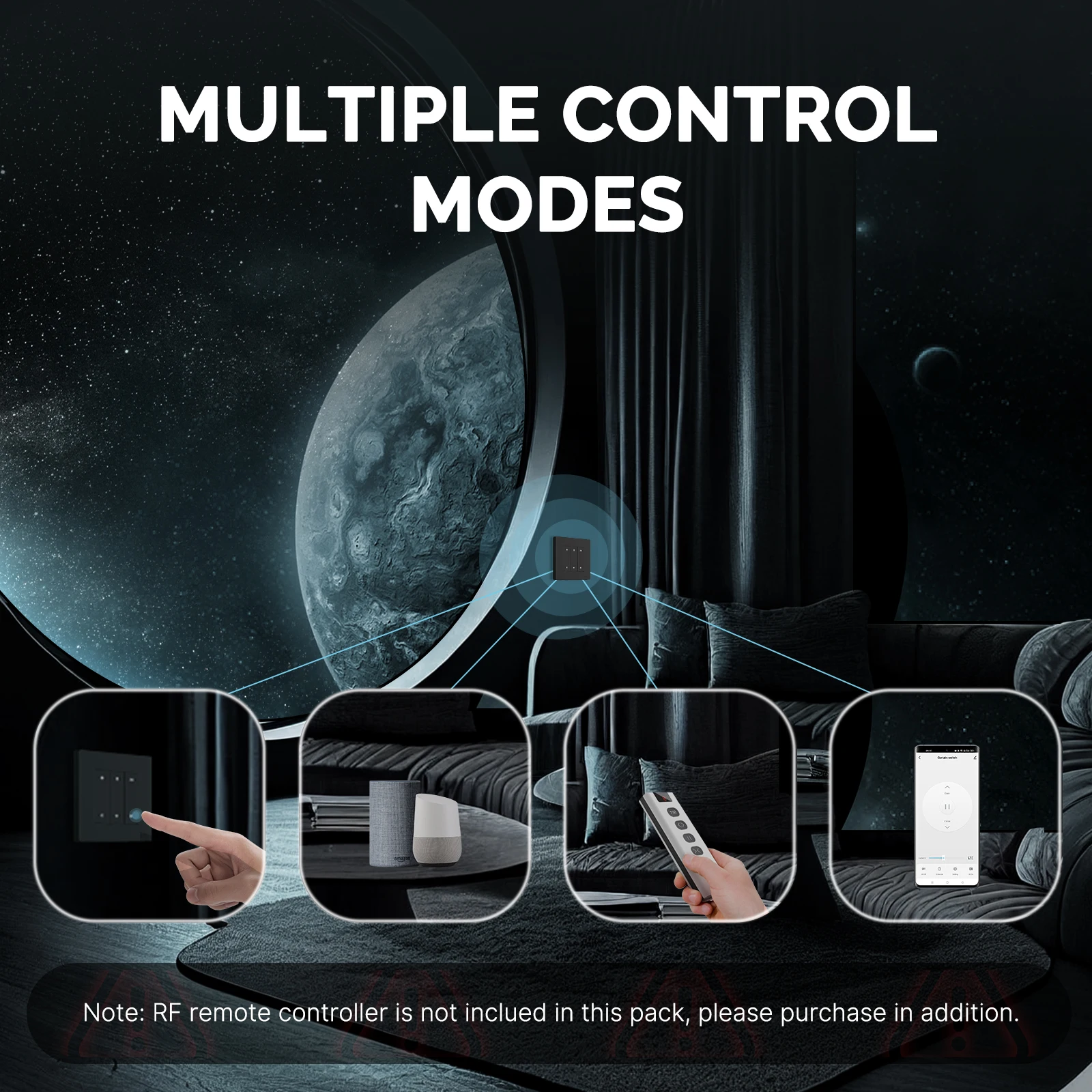 App control, remote controller, switch control or voice control with Alexa/Google Home, multiple control methods you can choose from without distance limitations when controlling curtains.