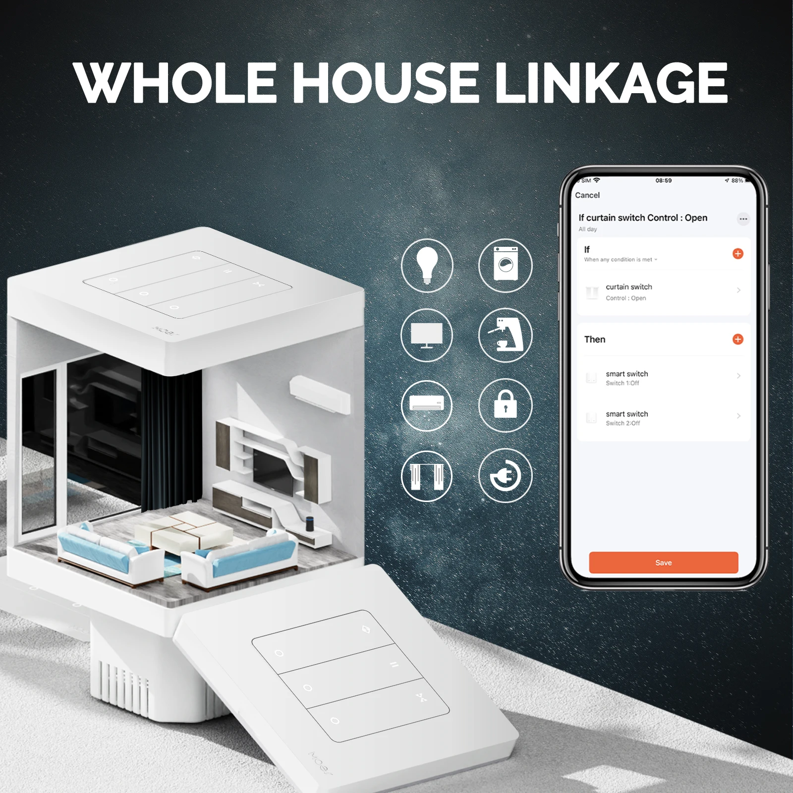 As a smart switch supporting ZigBee protocol, it can link with your home smart devices under ZigBee, to create your own smart scene, realizing the best practicability.