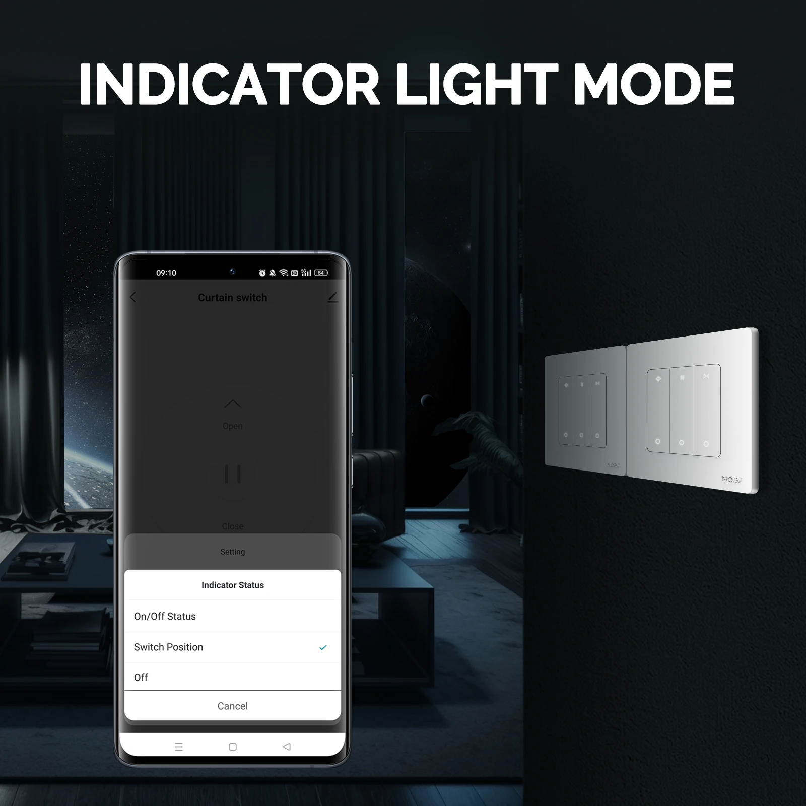 -Ensure Curtains Open/Closed Fully,MULTIPLE CONTROL MODES,Indicator Light Mode,Whole House Linkage