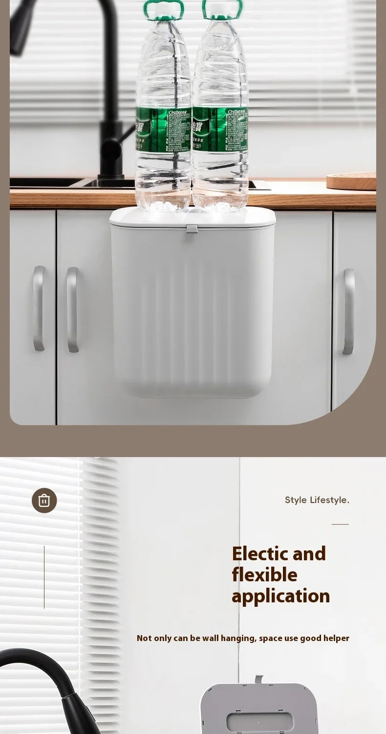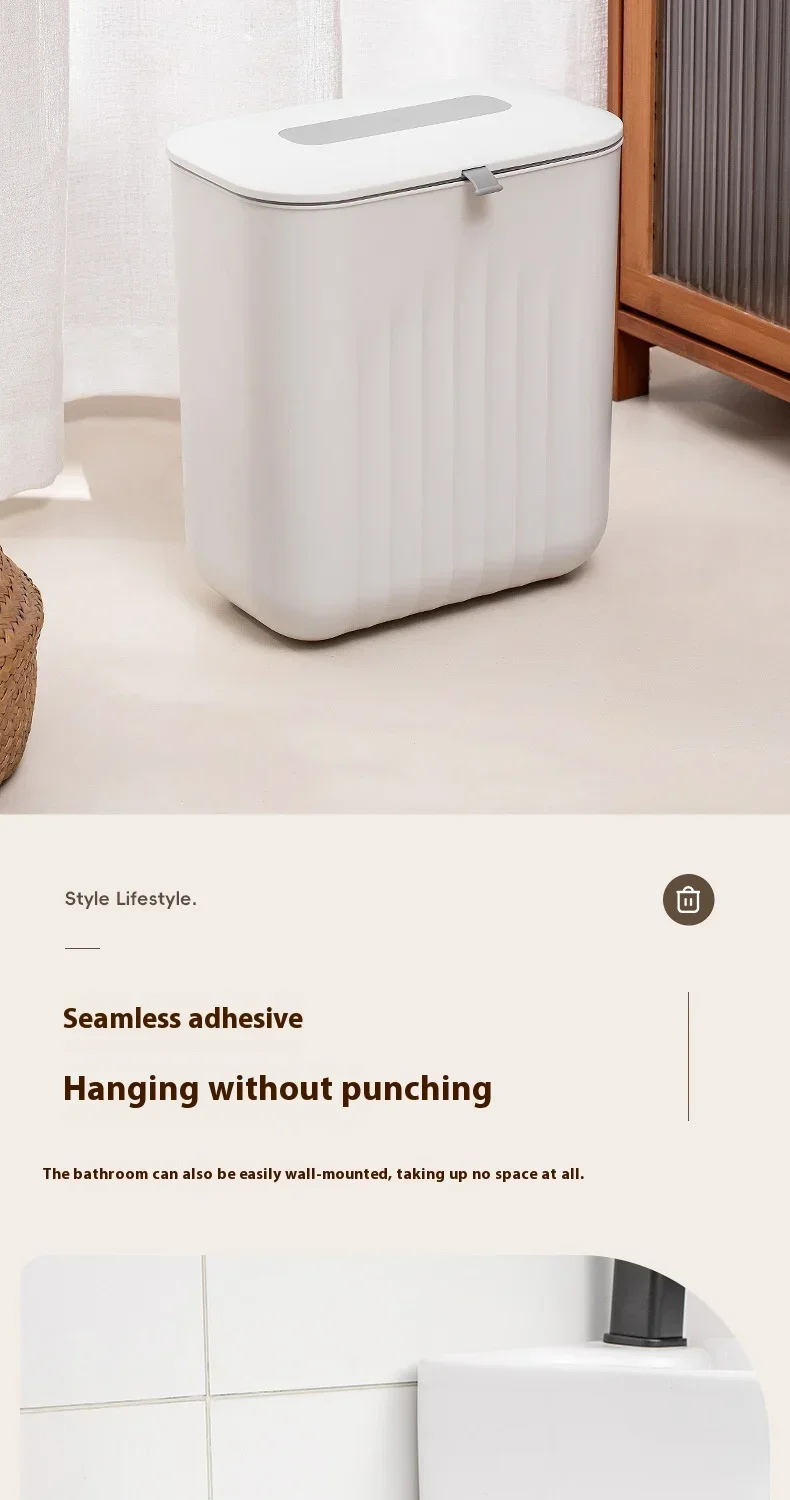 mounted PP Paper Basket Storage Tube Household box Kitchen Trash Bin Without Punching Handle with Lid Two-way Opening Lid Wall