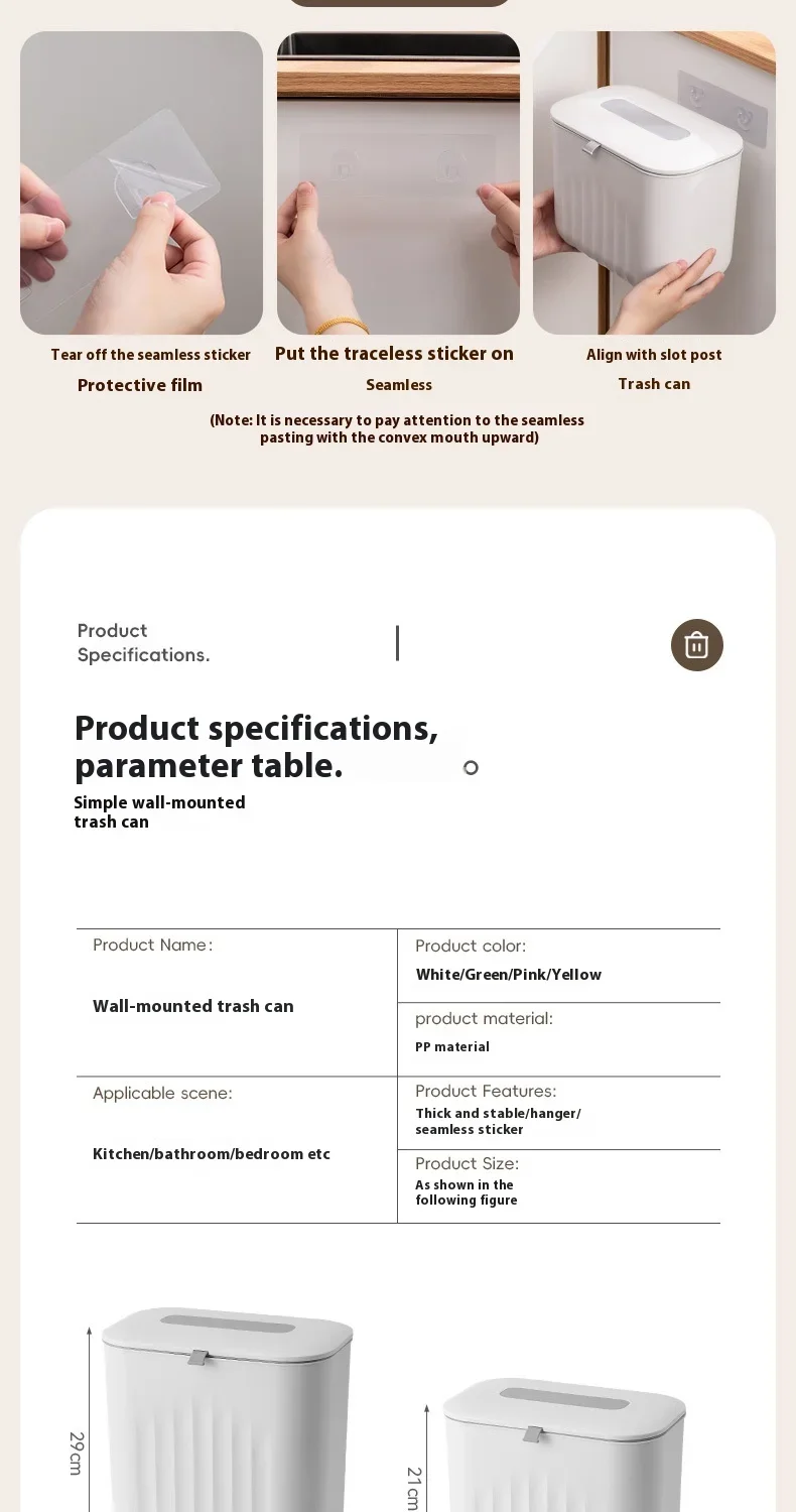 Be the first to review “mounted PP Paper Basket Storage Tube Household box Kitchen Trash Bin Without Punching Handle with Lid Two-way Opening Lid Wall”