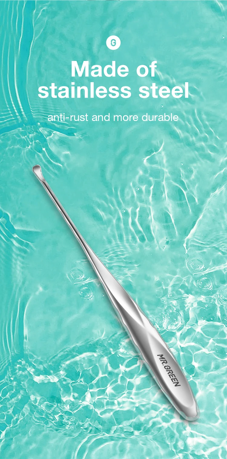 MR.GREEN Stainless Steel Ear Pick with Rounded Edge Easy Clean Ear Spoon Earpick for Personal Hygiene