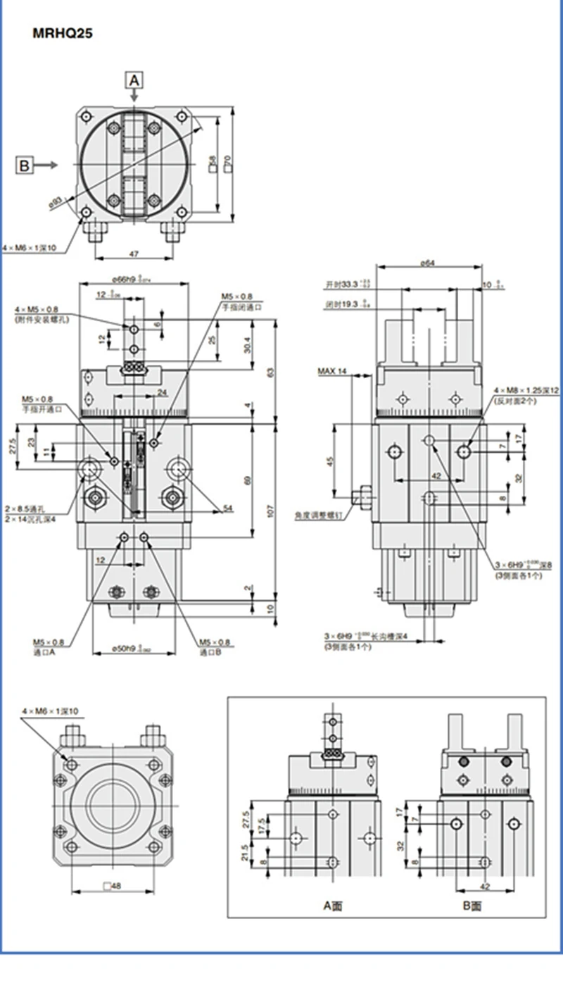 MRHQ10D-90S-N MRHQ16D-90S-N MRHQ20 MRHQ16 MRHQ25 Rotary Actuators Air Grippers Angular Air Pneumatic Cylinder Piston Claw