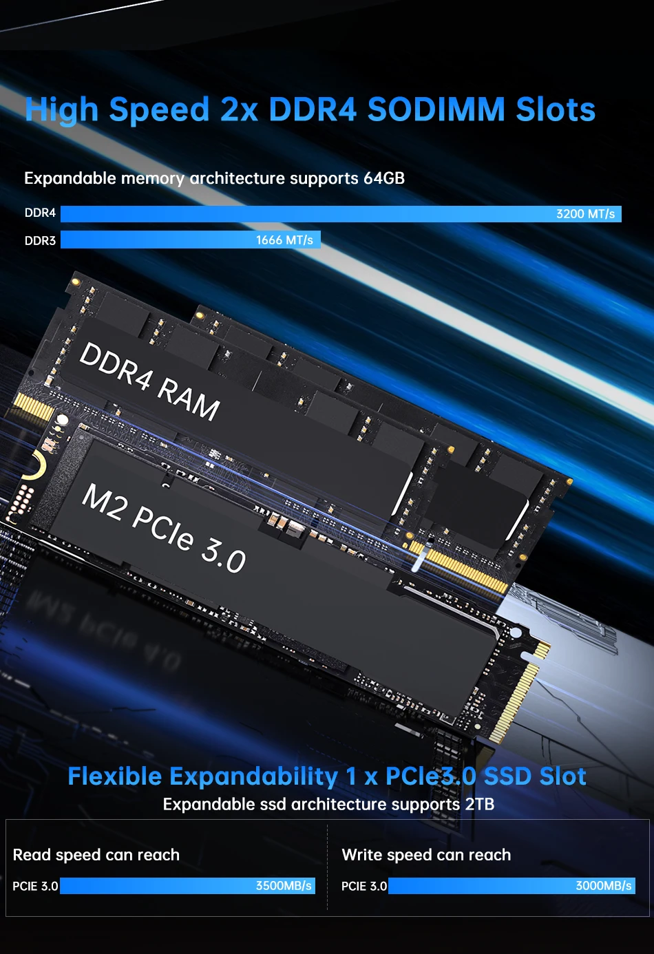 – Dual DDR4 RAM slots supporting up to 64GB for seamless multitasking.