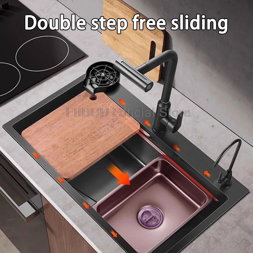 【High-Quality Sink】 Made of 304 stainless steel, thickened and reinforced. Resists deformation and has stronger wear resistance.