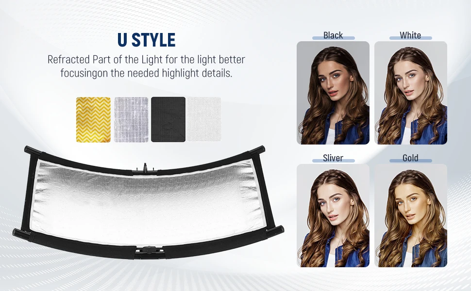 NEEWER U Type Light Diffuser Reflector for Studio with Carrying Case Arclight Curved Reflector in Black/White/Gold/Silver