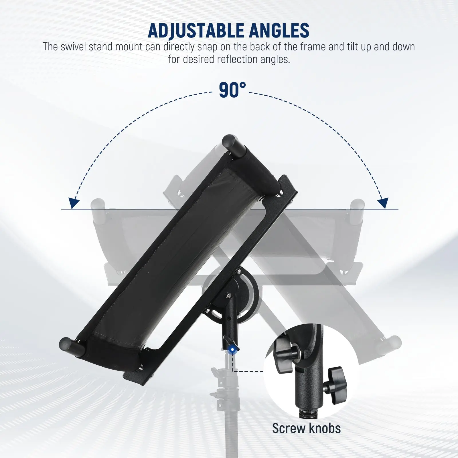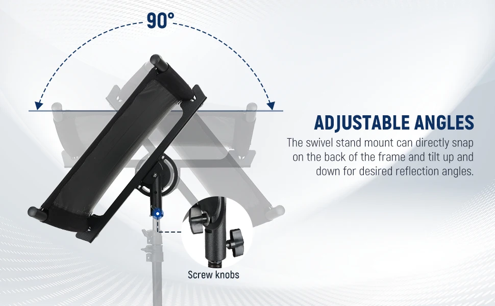 Adjustable Angles】 The swivel stand mount can directly snap on the back of the frame and tilt up and down for desired reflection angles. Screw knobs help you secure the mount on a stand and adjust angles with ease (stand not includ