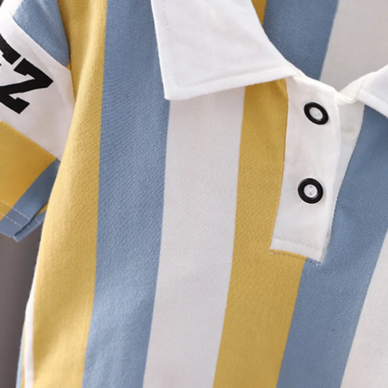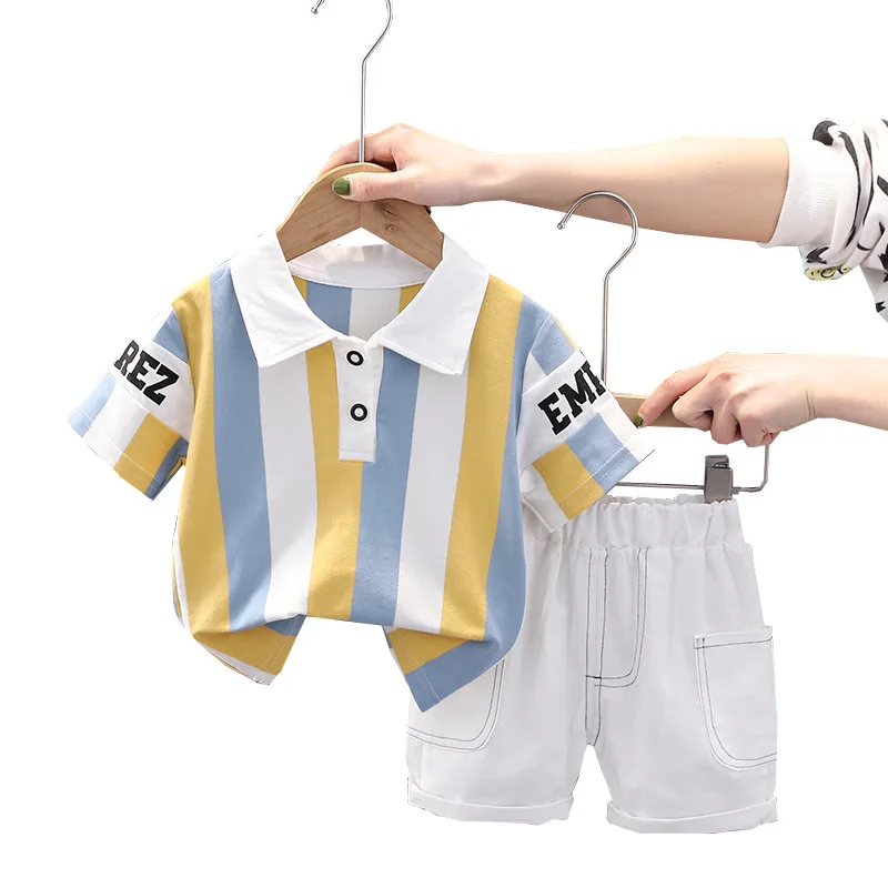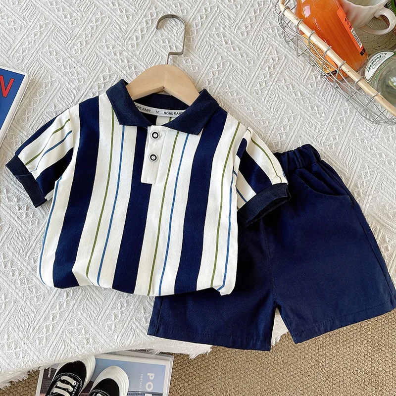 New 2025 Boys Cotton Striped Shorts Set 2-Piece Summer Outfit Fashion Short Sleeve Casual Playwear Stylish Kids Clothing