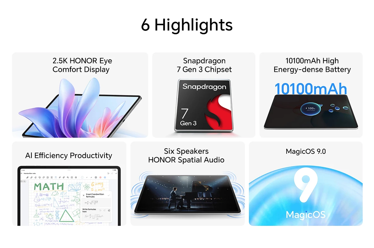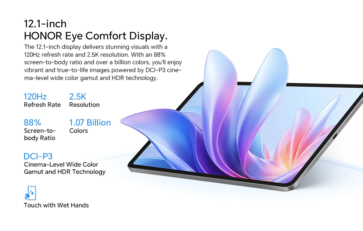 New HONOR Pad 10 Global Version WIFI 12.1” 2.5K HONOR Eye Comfort Display Snapdragon7 Gen 3 10100mAh High Energy-dense Battery