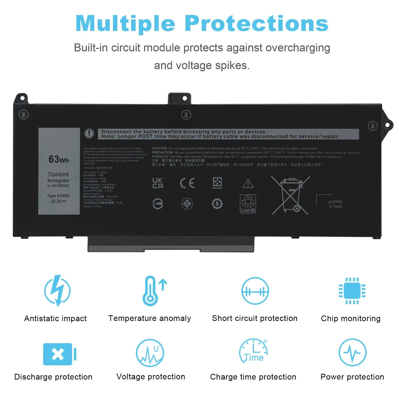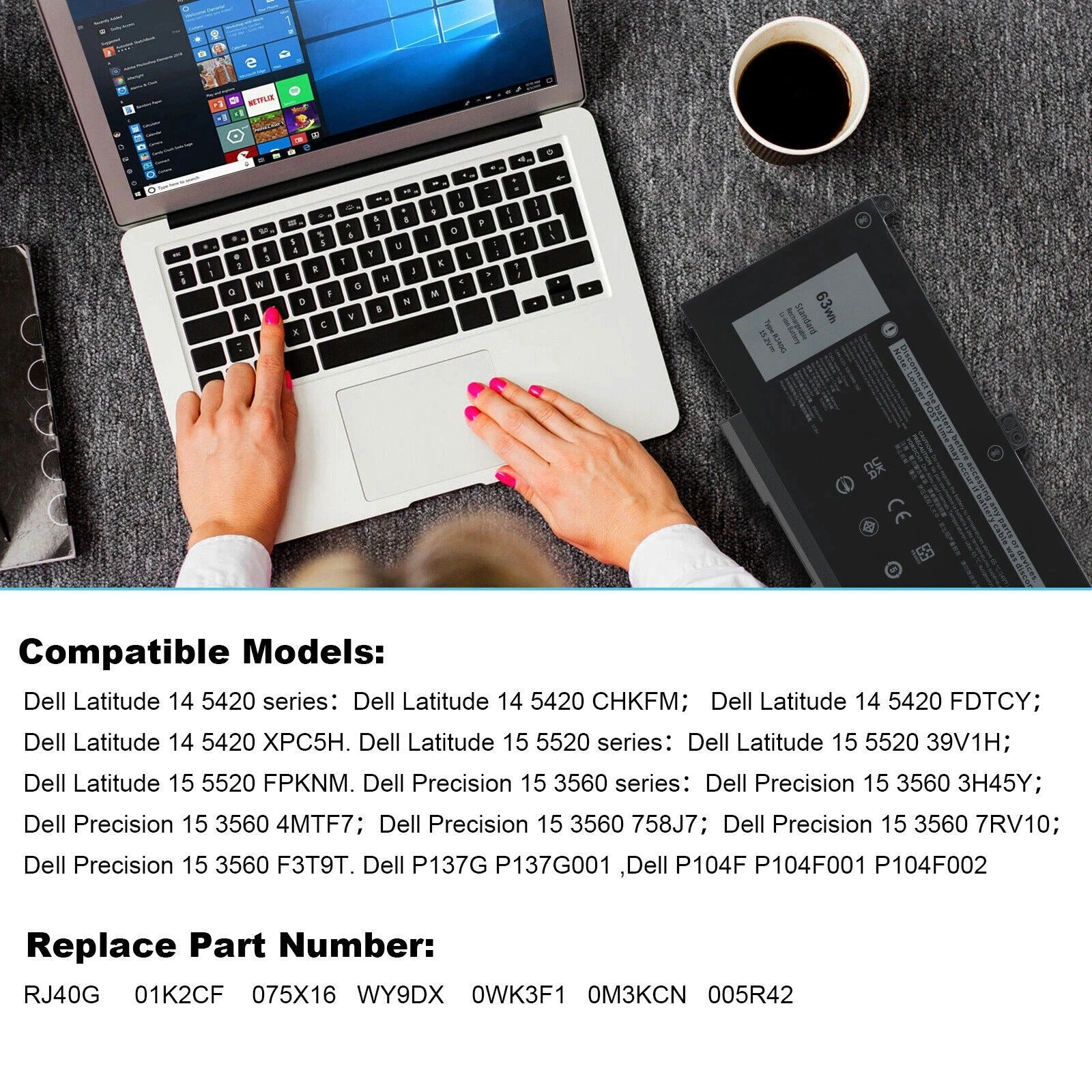 New RJ40G Laptop Battery For Dell Latitude 5420 5520 Precision 3560 63Wh M033W
