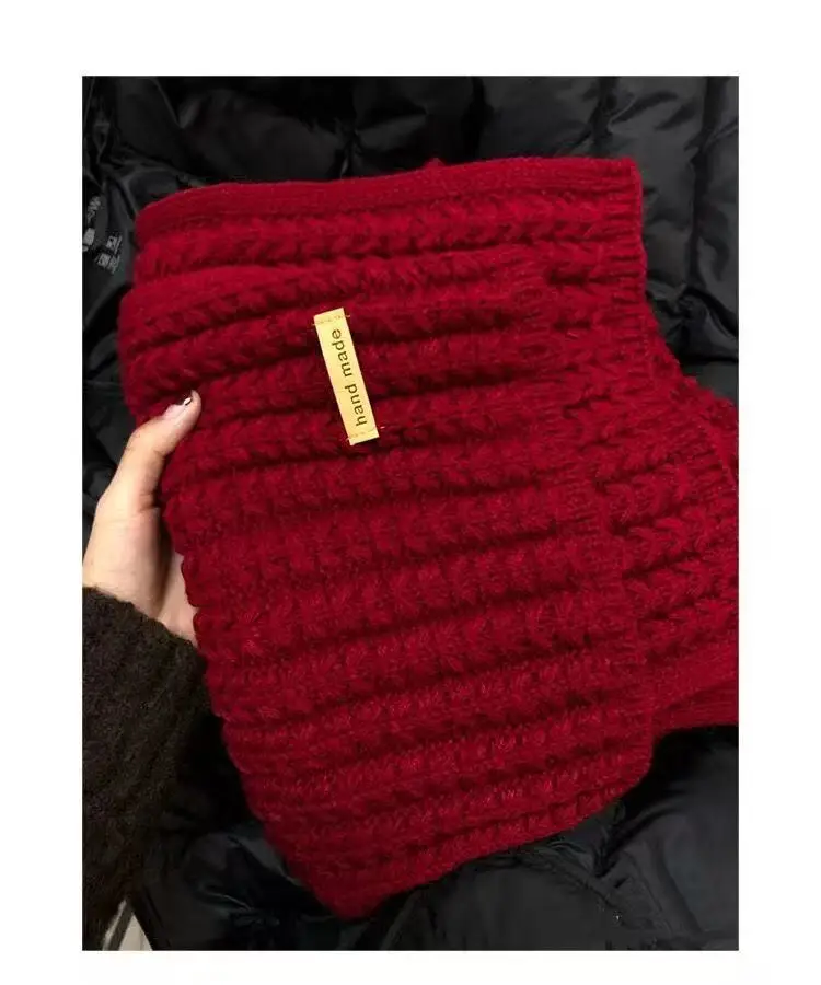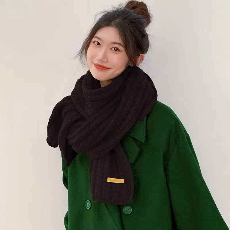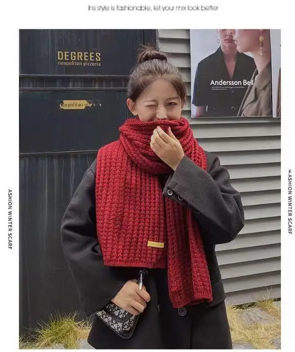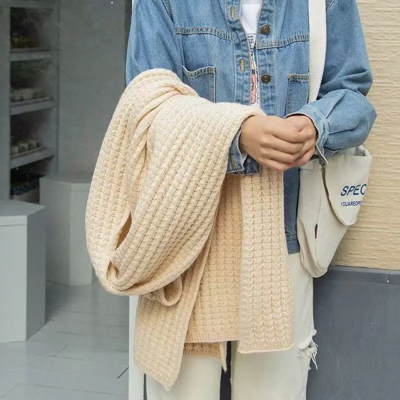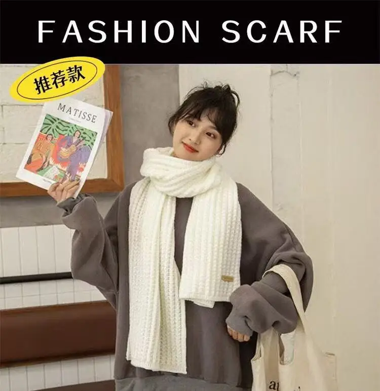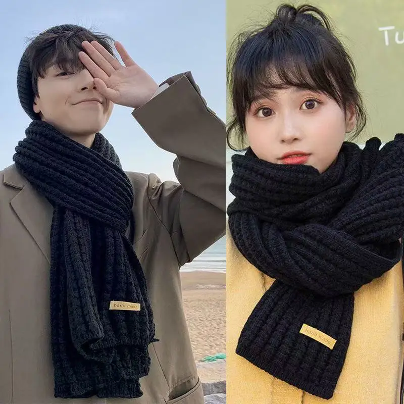 New Winter Thick Warm White Knit Scarf for Women Men Wool Soft Solid Cashmere Neckerchief Preppy Style Couple Students Scarves
