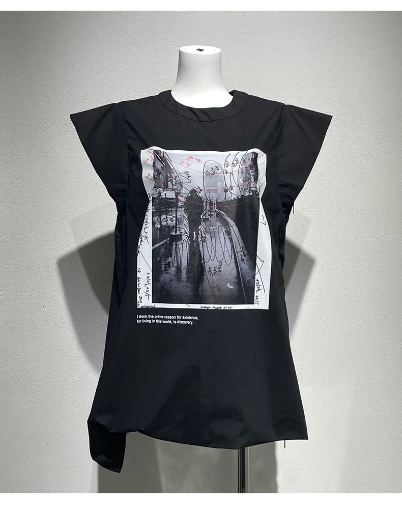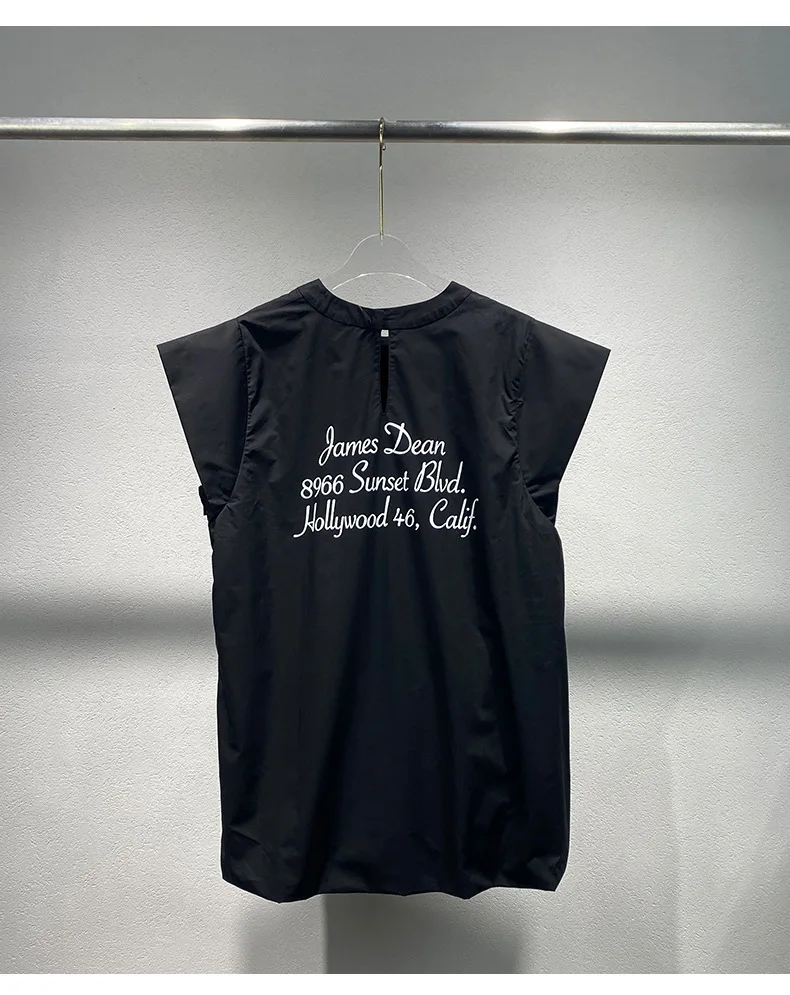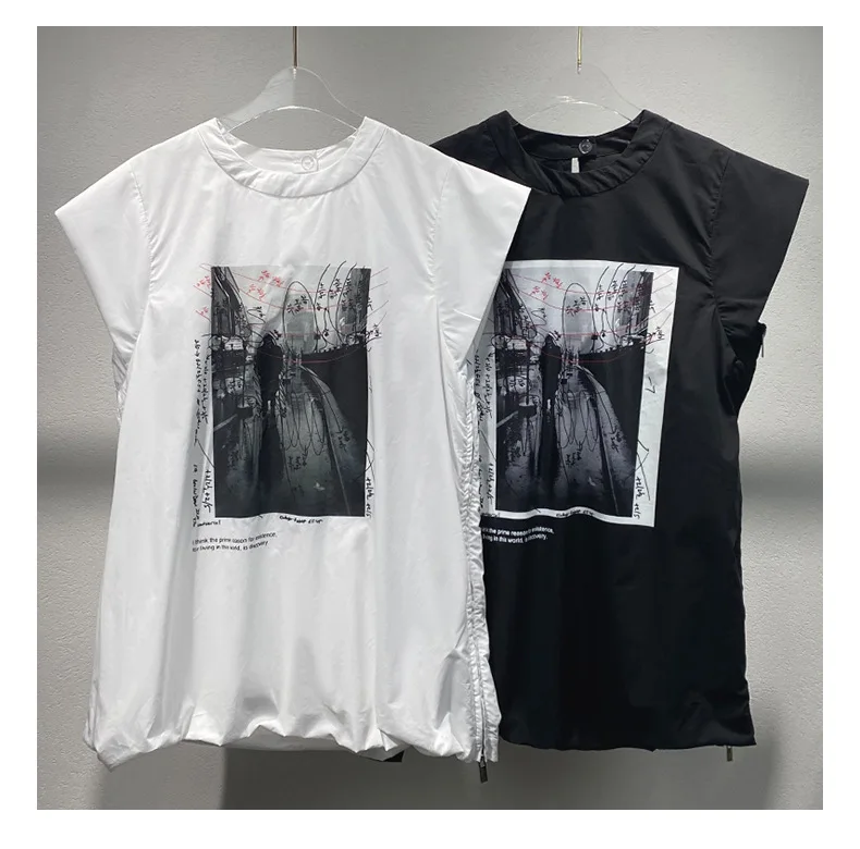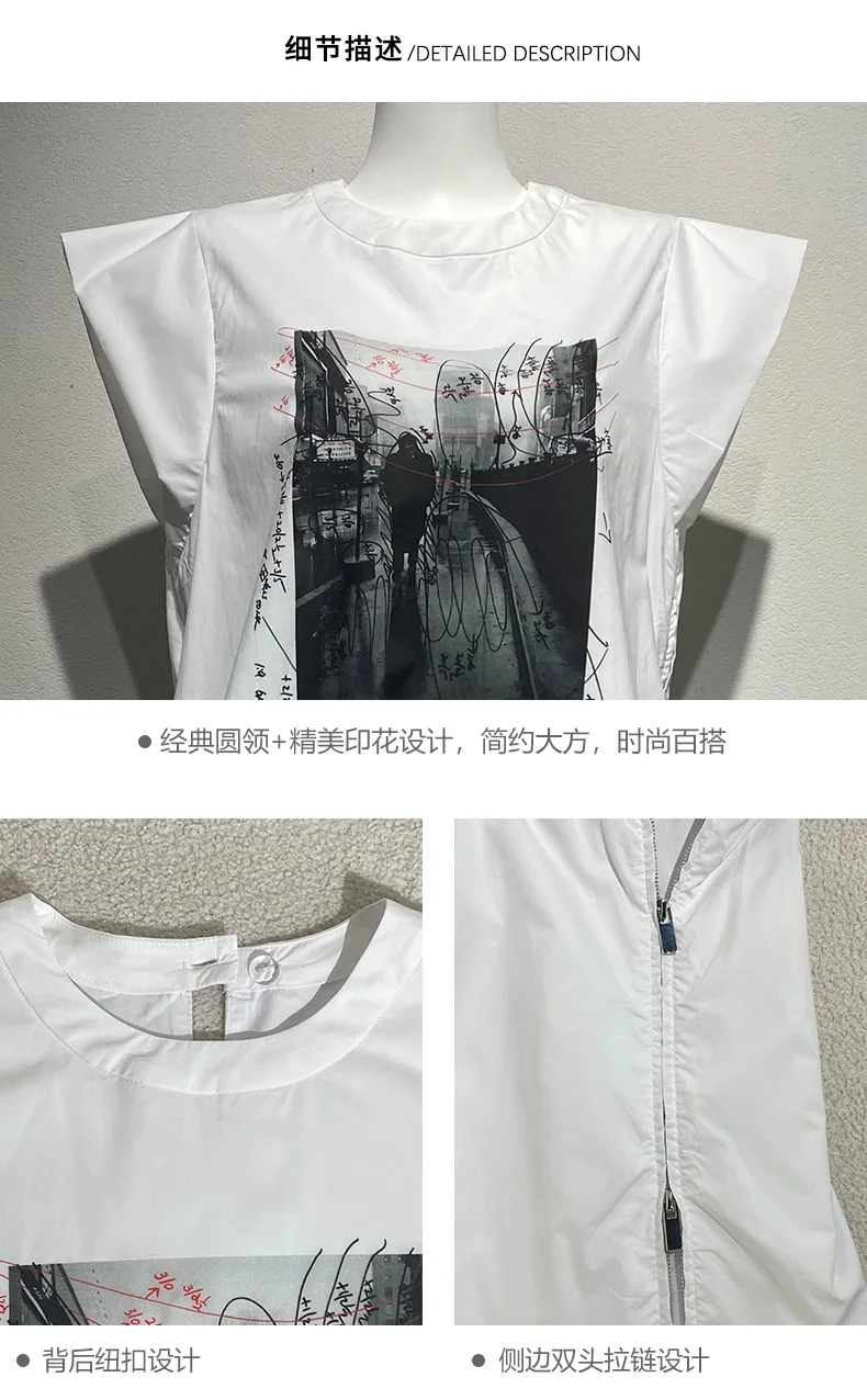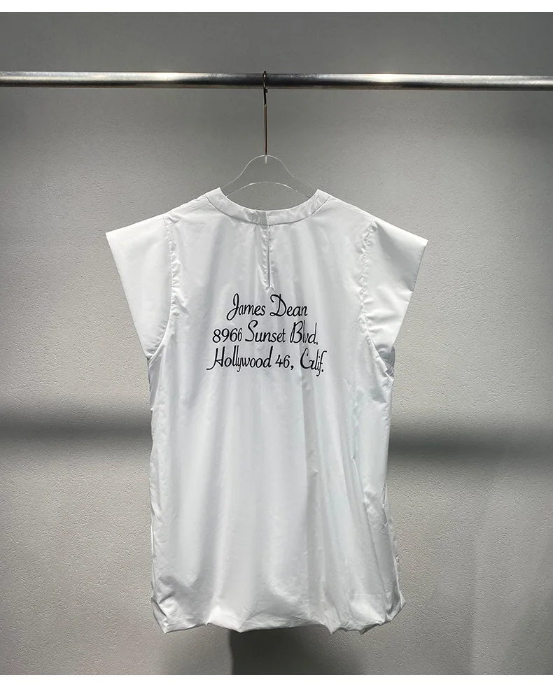 Niche 2025 spring and summer new white printed round neck loose sleeveless T-shirt woman y2k clothes