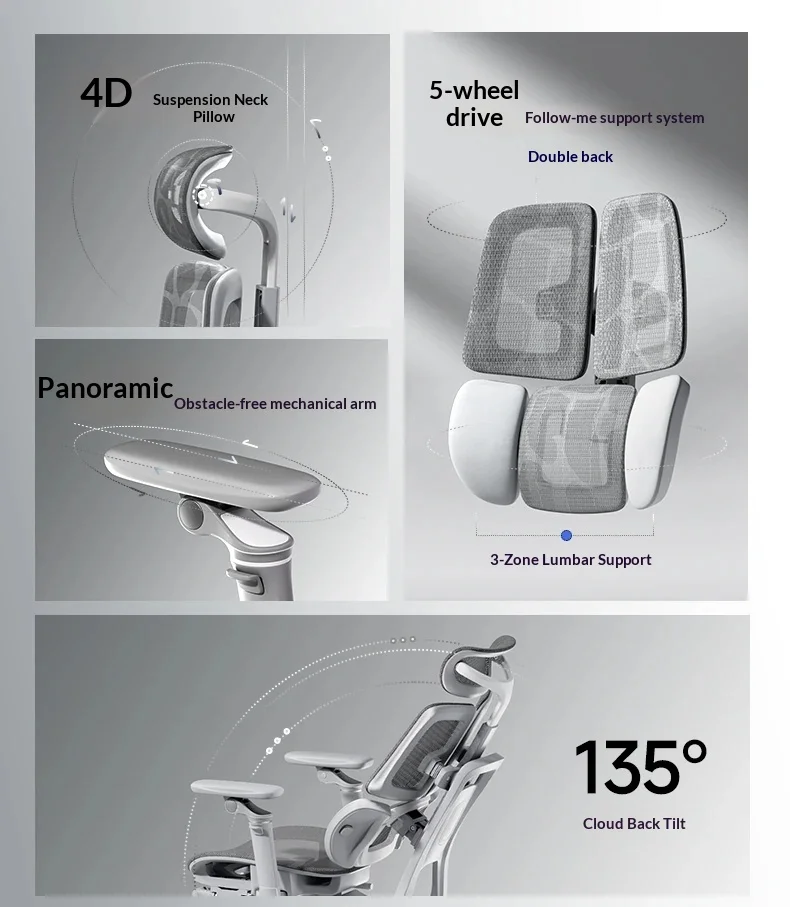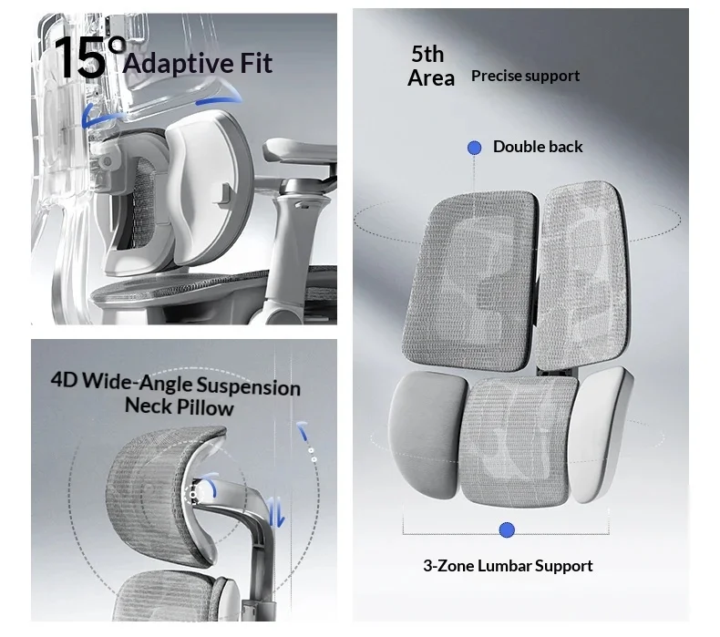 2、The headrest can be raised and lowered by 8cm, and rotated 45° back and forth