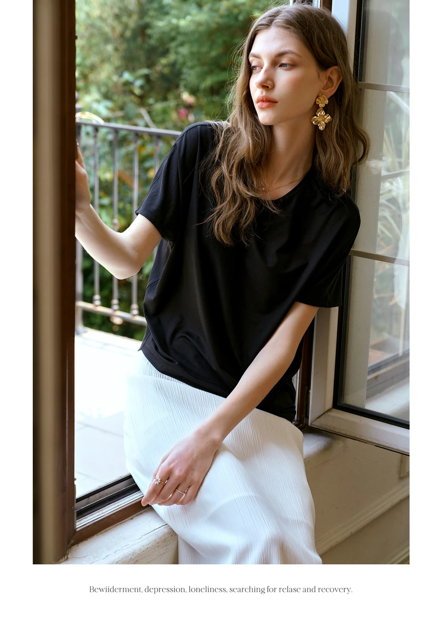 OLrain Short Bat Sleeve T-shirts for Women Summer 2025 Casual Loose Tee Shirt Ladies Crew Neck Tops Female Clothes O57XT98836