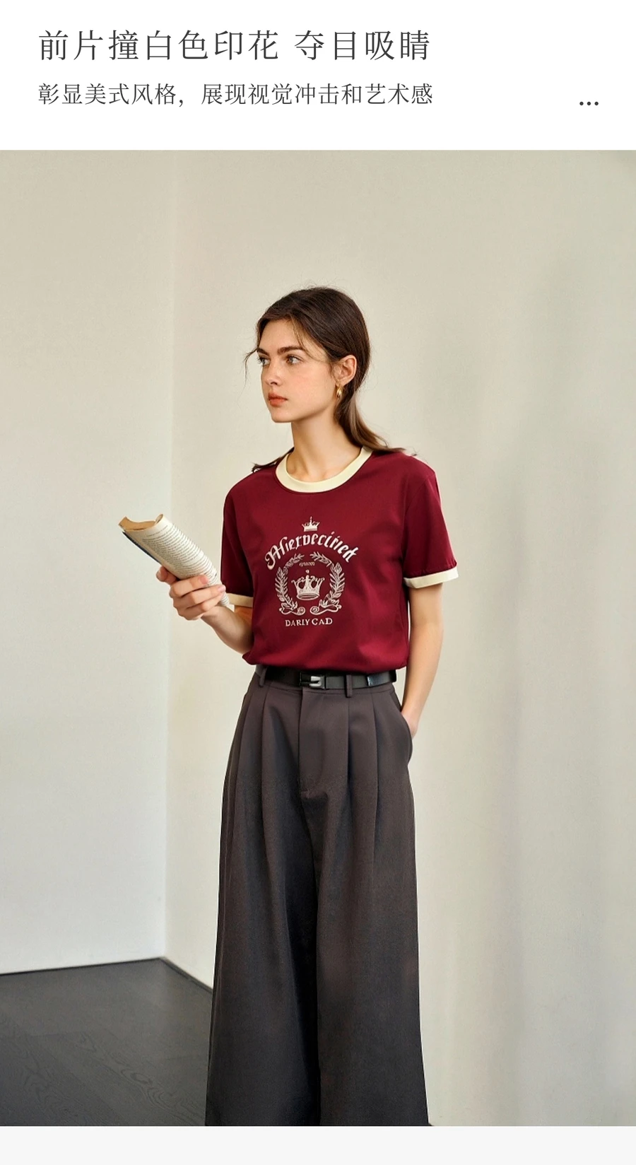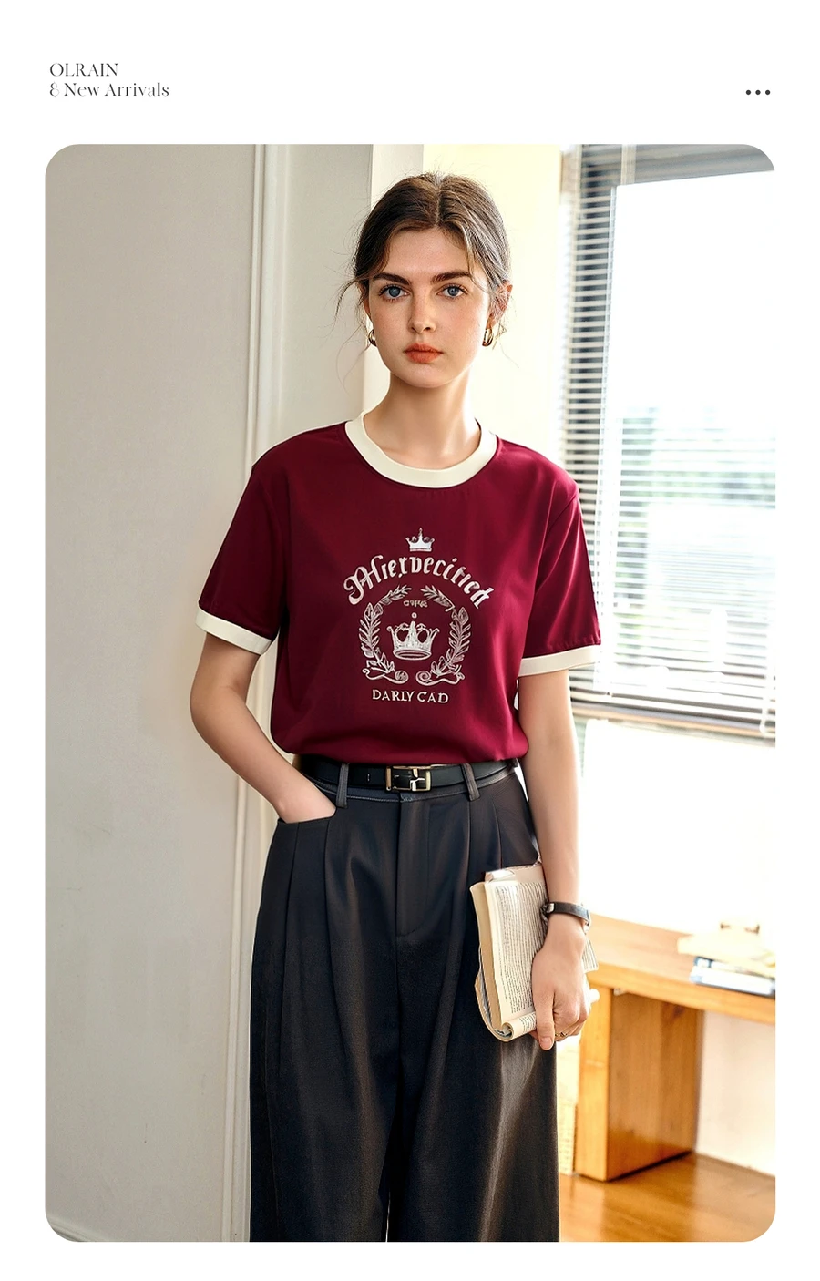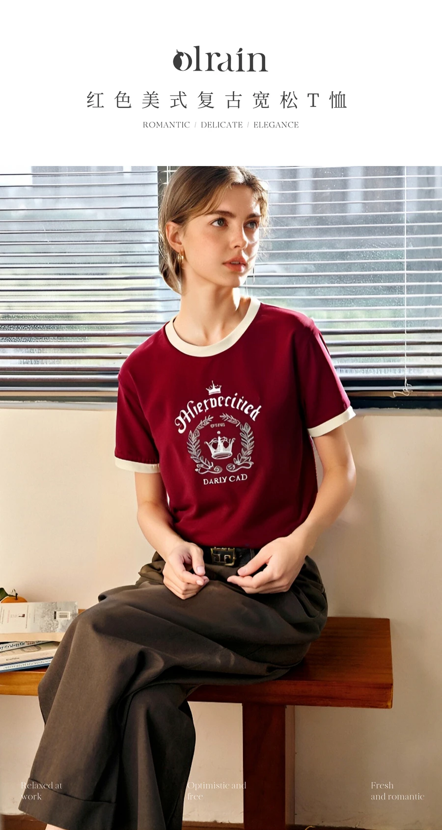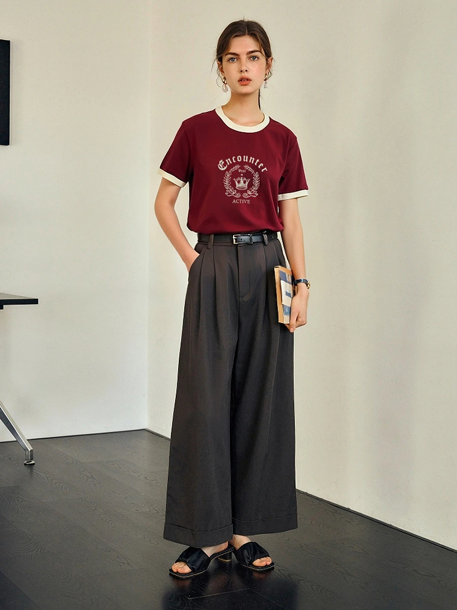 OLrain Women’s Short Sleeve Graphic T-Shirt Summer Tees 2025 American Retro Contrast Crew Neck Red Top Woman Clothing O57XT98985