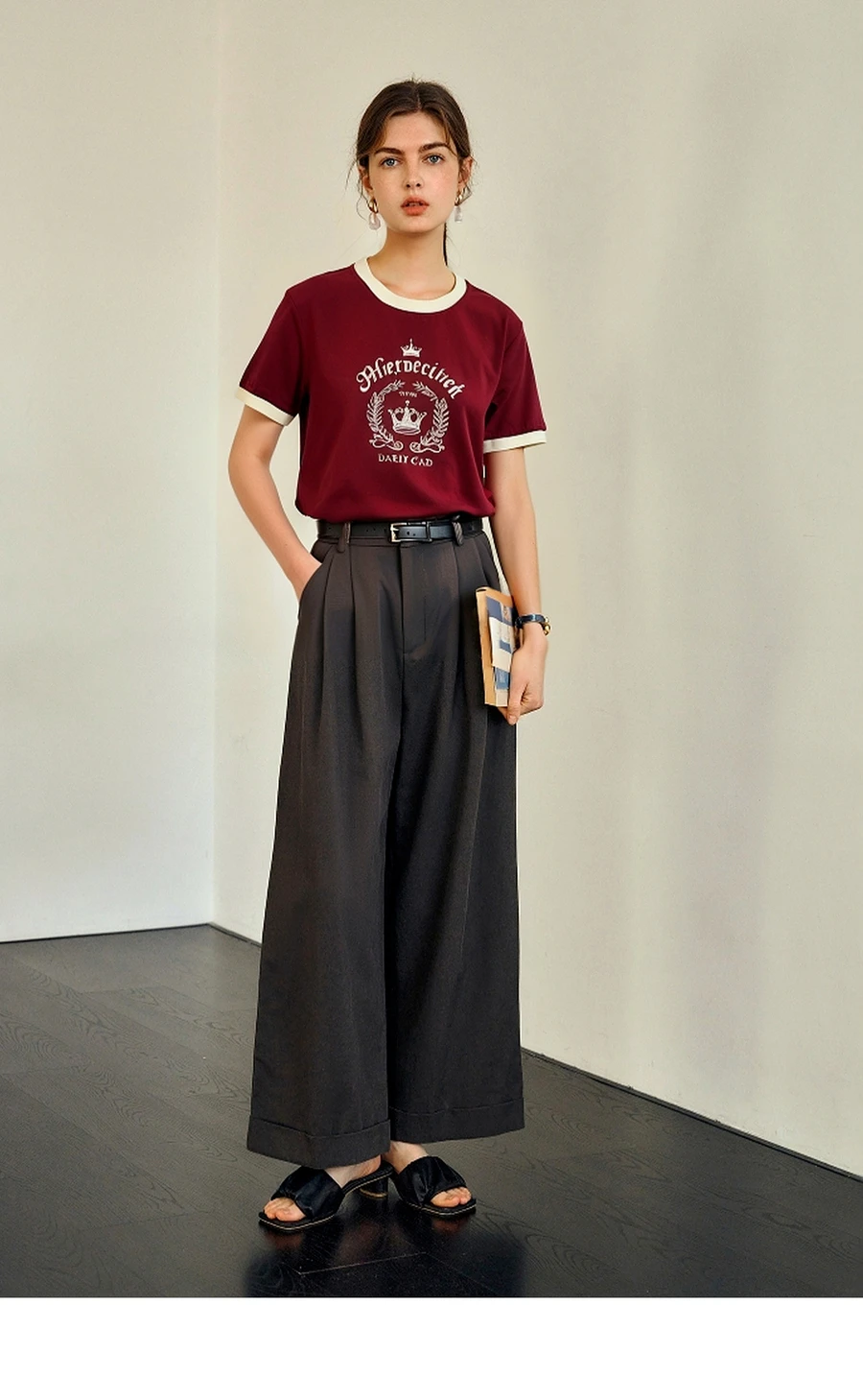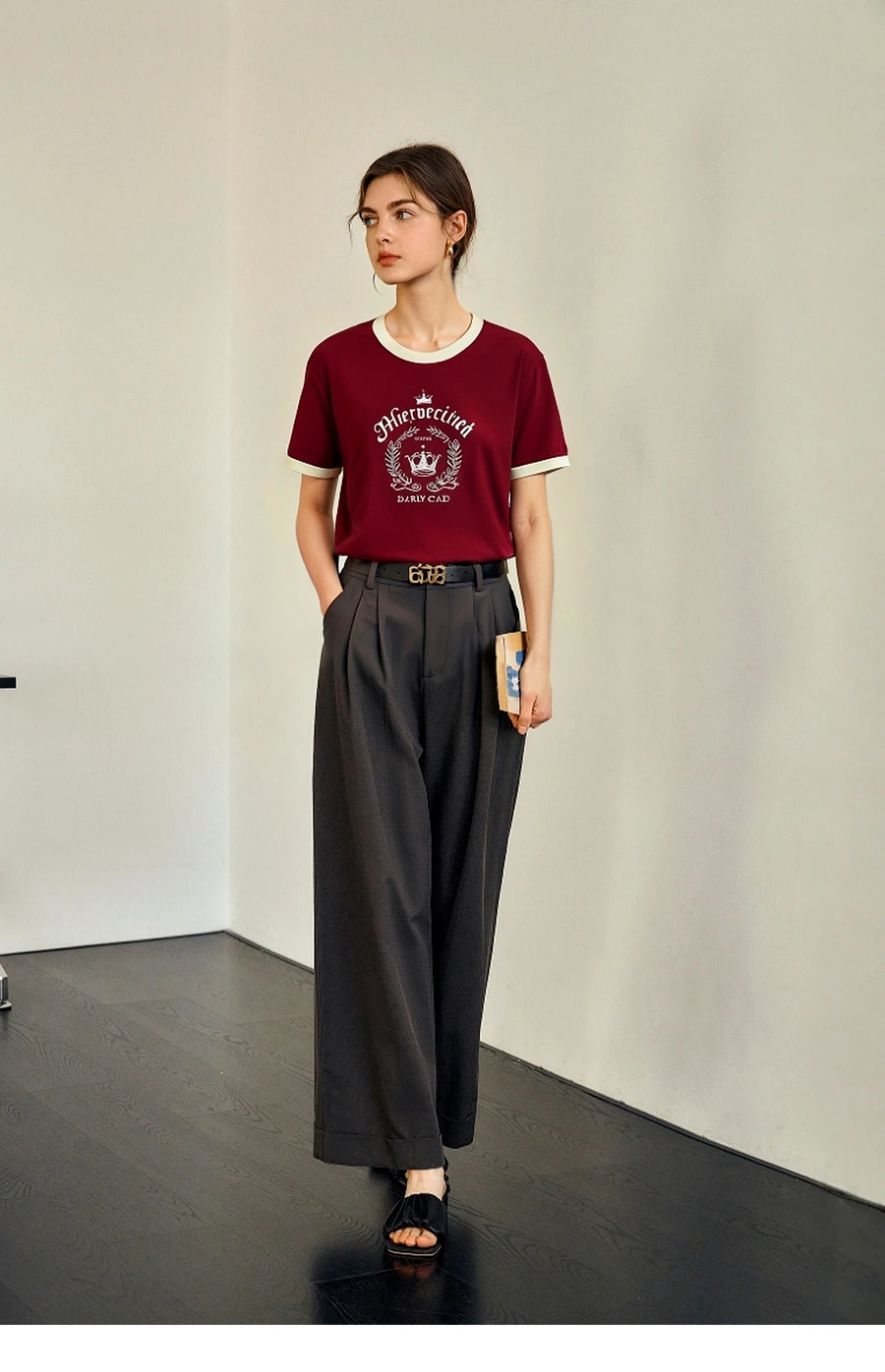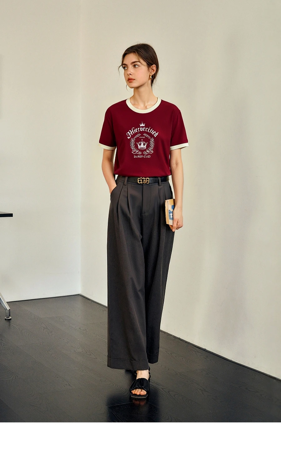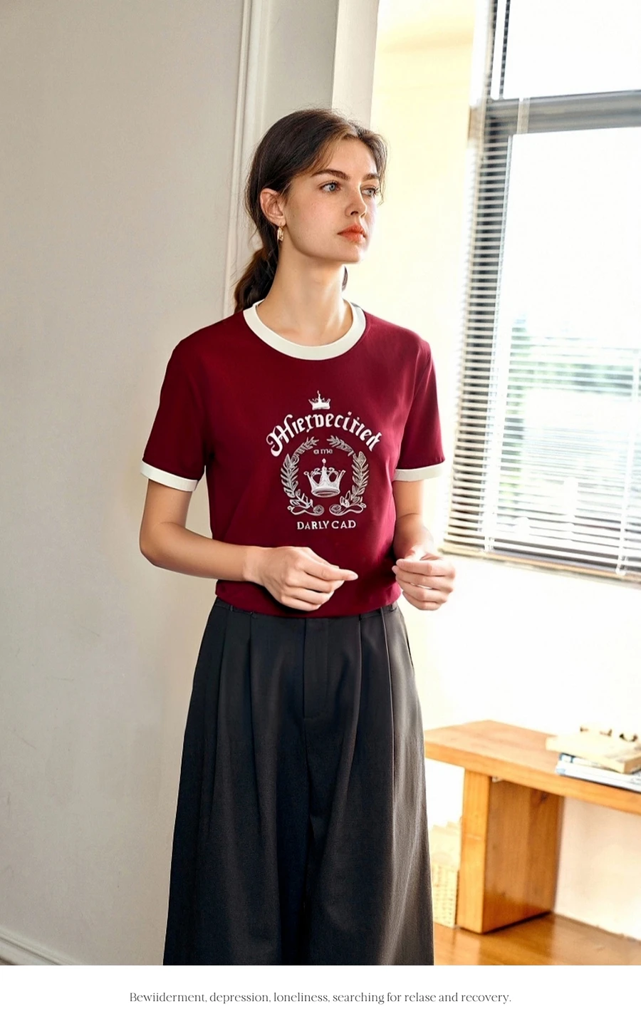 OLrain Women’s Short Sleeve Graphic T-Shirt Summer Tees 2025 American Retro Contrast Crew Neck Red Top Woman Clothing O57XT98985