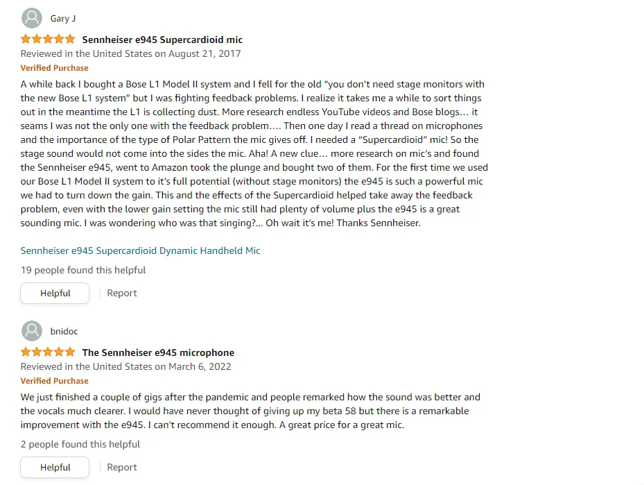 - Sennheiser: E945 Professional Wired Cardioid Dynamic Microphone