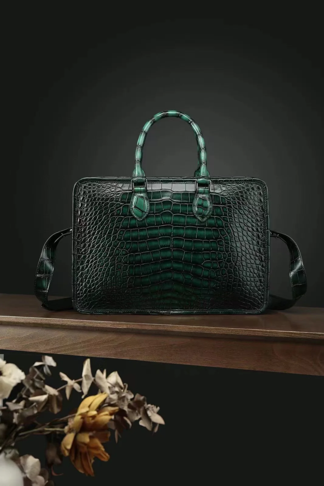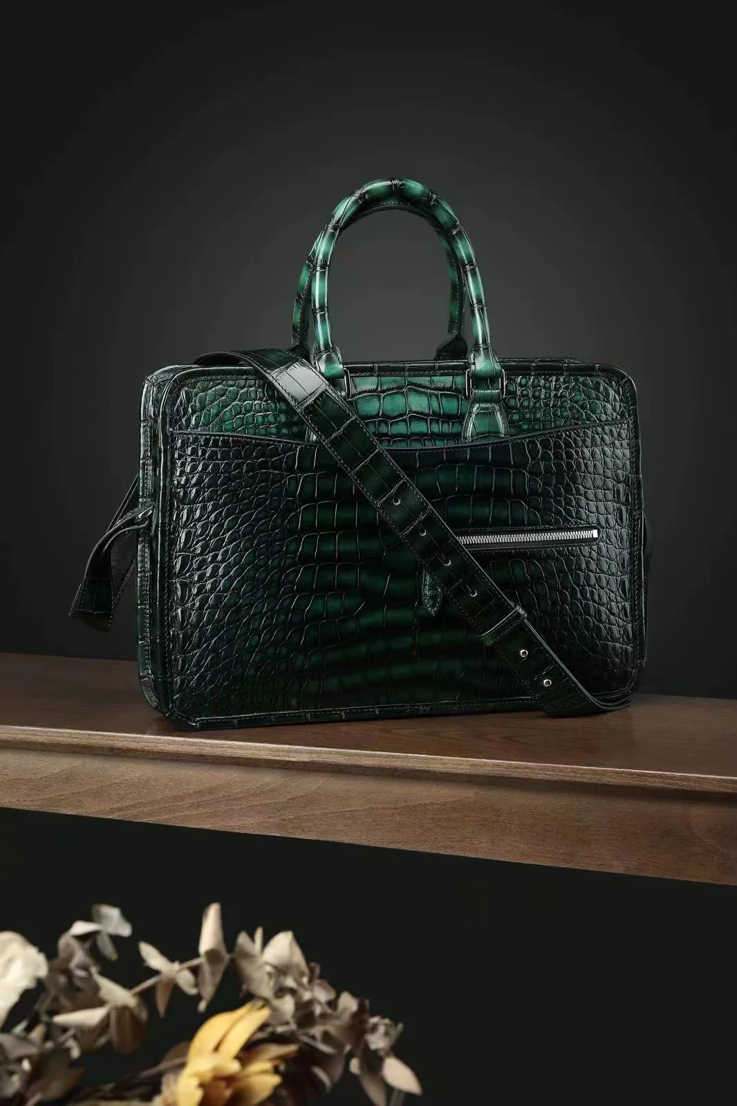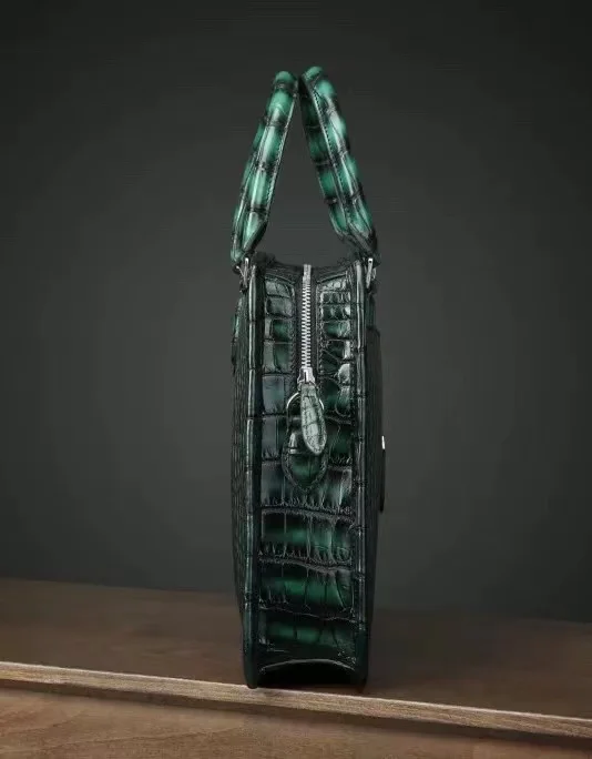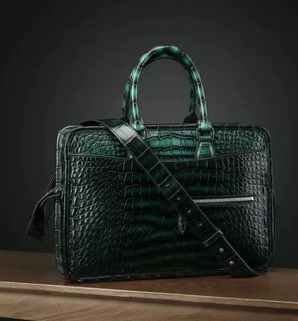 ourui men handbag maler crocodile leather bag brush color dark green male brifecase