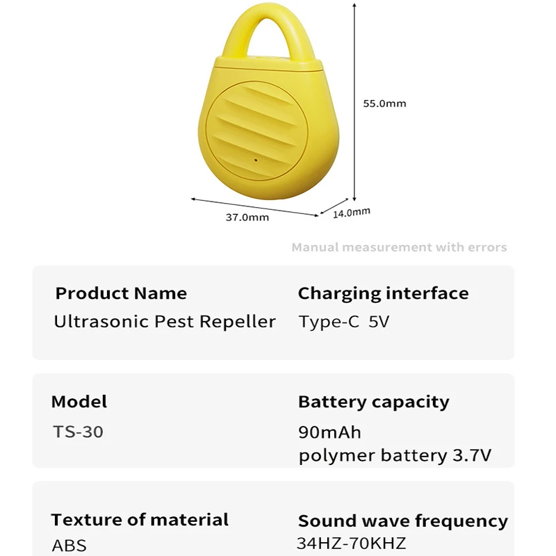 Power supply type: External power supply nExternal dimensions: 50 nShell material: ABS nBird repelling range: 50m nRated voltage V: 3.7V nFrequency