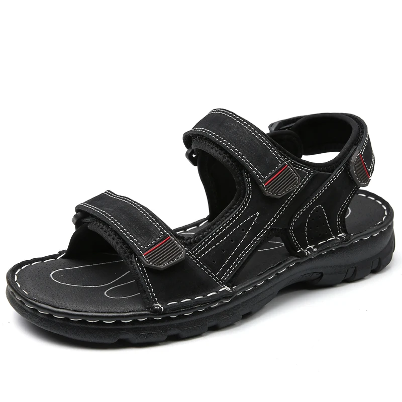 Outdoor Leather Men Sandals Summer Casual Shoes For Men Beach Sandals Soft Breathable Men Shoes Plus Size 38-48